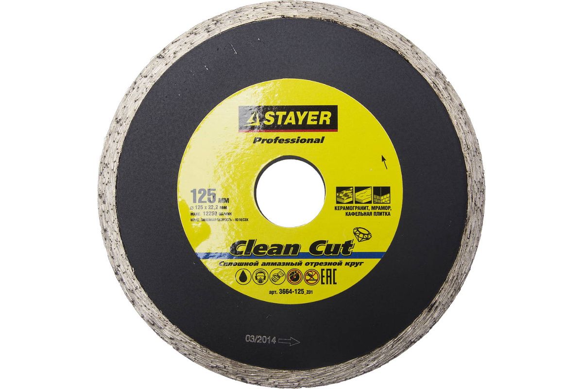 Круг алмазный STAYER PROFESSIONAL 3664-125_z01 Ф125х22мм мокрый рез сплошной по керамограниту