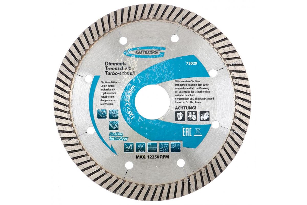 Круг алмазный GROSS 73029 Ф125х22мм турбо по железобетону