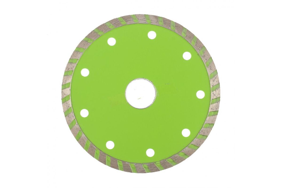 Диск предназначен для сухого резания, армированного бетона различных марок, кирпича, природного камня.На основание из конструкционной стали, методом холодного прессования, нанесён режущий слой, состоящий из порошков различных металлов и высококачественного синтетического алмаза.Турбированная форма, обеспечивает плавное безударное резание, с эффективным охлаждением.