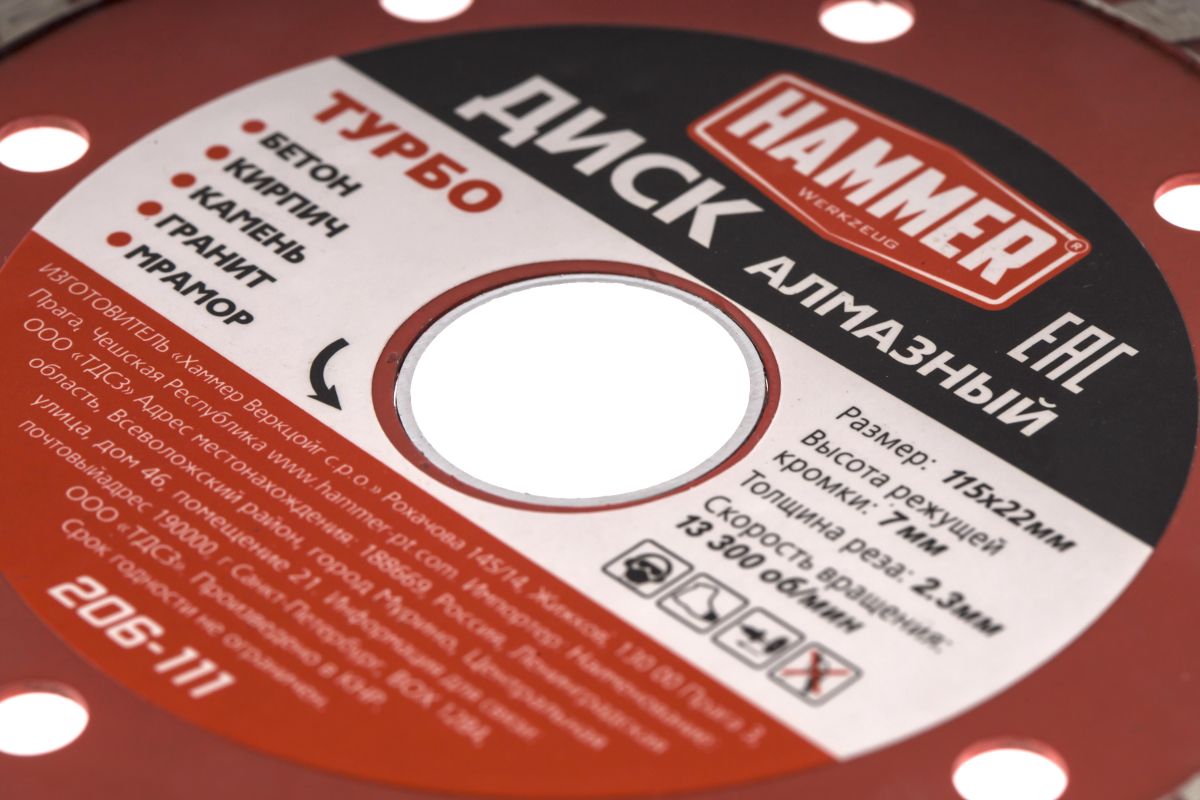 Круг алмазный HAMMER (206-111 DB TB) Ф115х22мм универсальный