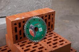 Диски серии ''Турбо'' предназначены для работ по бетону, граниту, мрамору, кирпичу, камню. Радиальные углубления на сплошной кромке обеспечивают воздушное охлаждение диска и точный рез даже тонкого материала.
