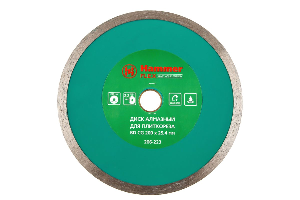 Диск алм. Hammer Flex 206-223 ВD CG Ф200х2.2х25.4мм сплошной по керамограниту