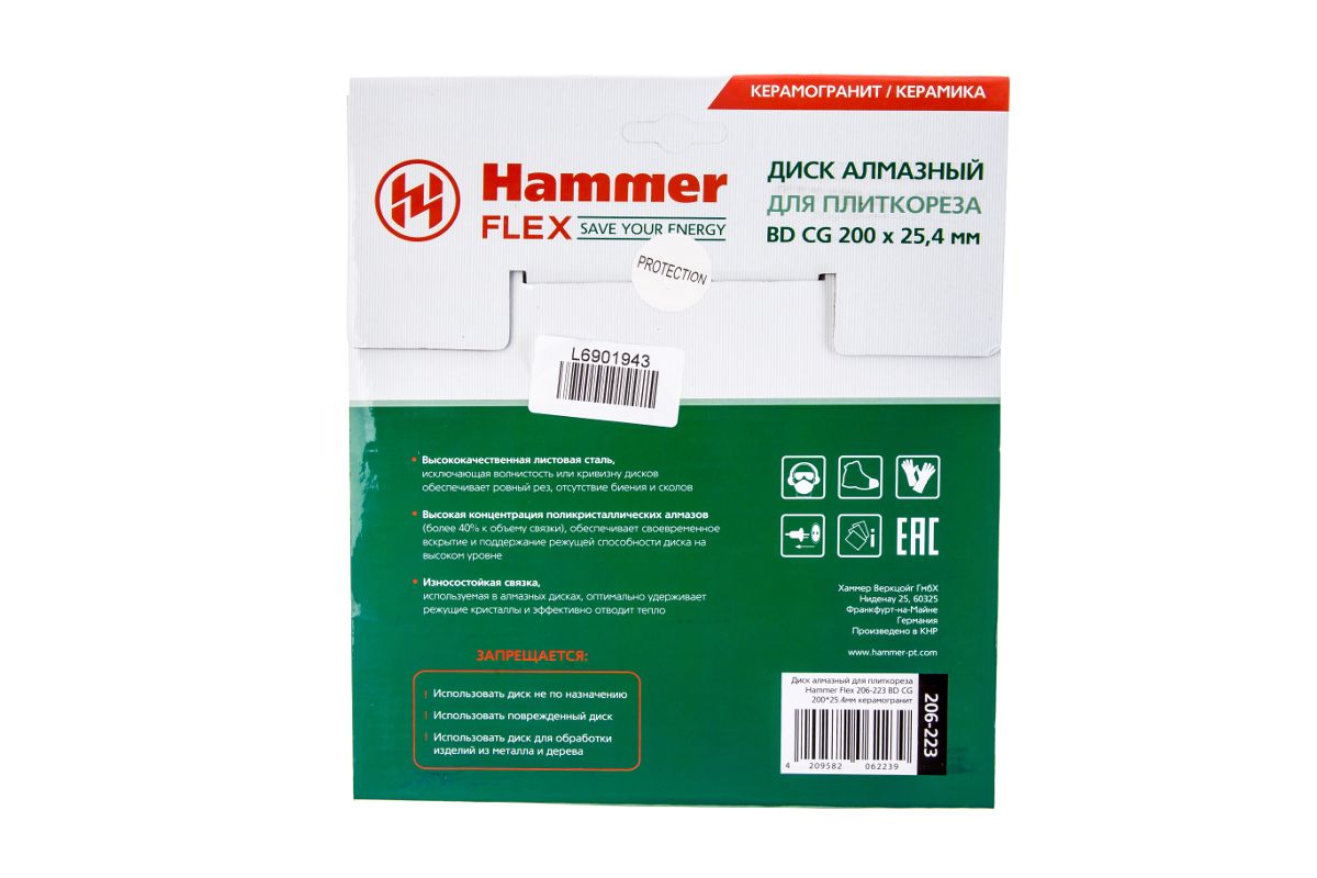 Круг алмазный HAMMER 206-223 ВD CG Ф200х25.4мм по керамограниту