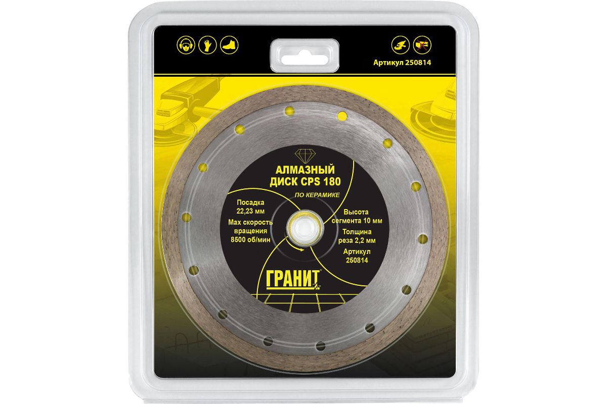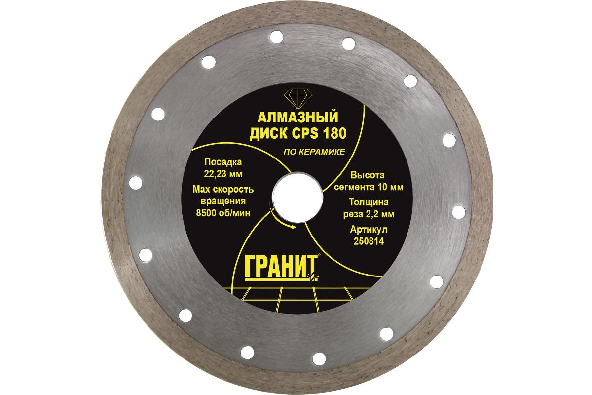 Диск алмазный ГРАНИТ 250814 по керамике 180х22.23х2.2 мм сплошной CPS Алмазные диски со сплошным сегментом для работ по керамике и керамограниту.