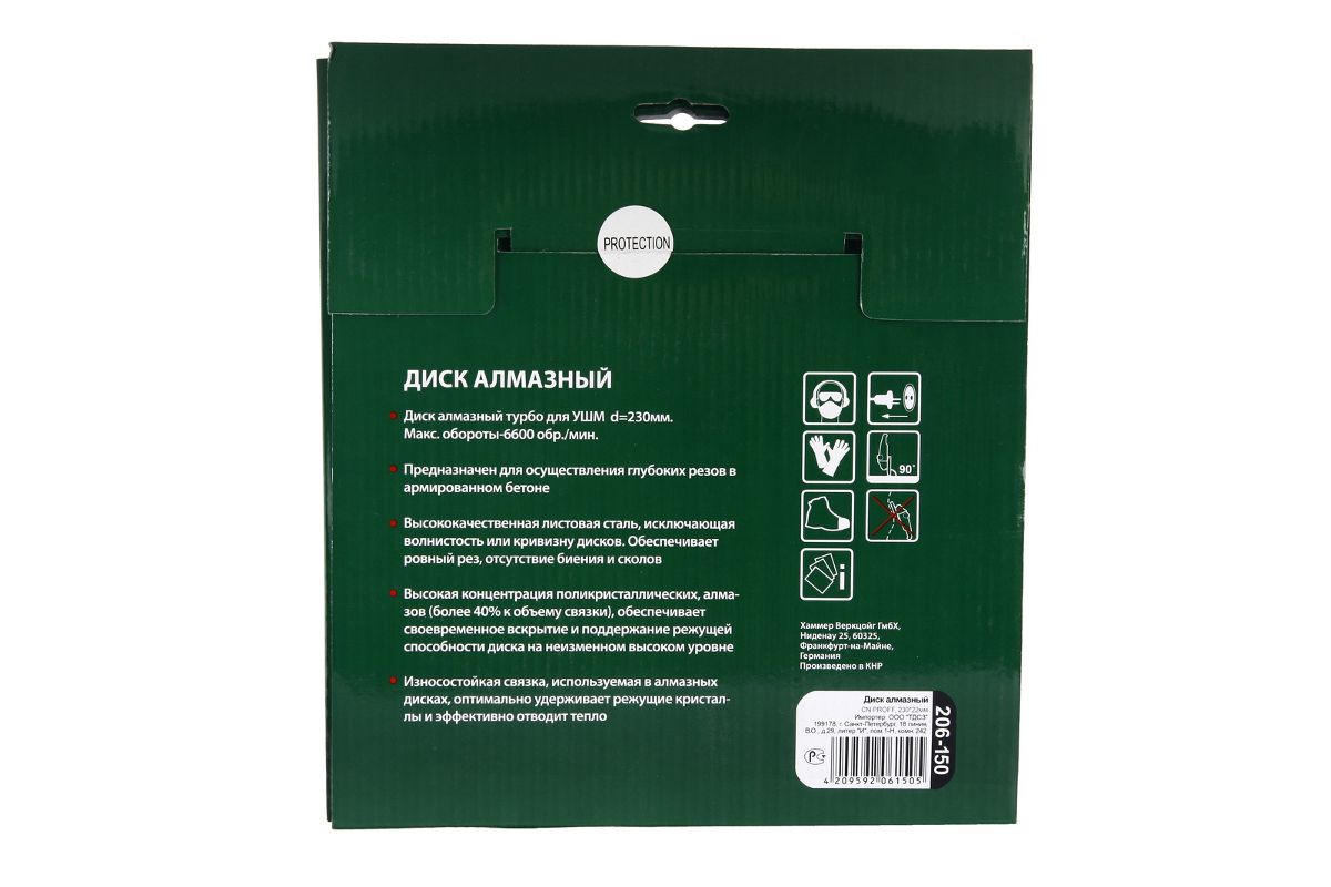 Круг алмазный HAMMER (206-150 DB CN PROFF) Ф230х22мм универсальный