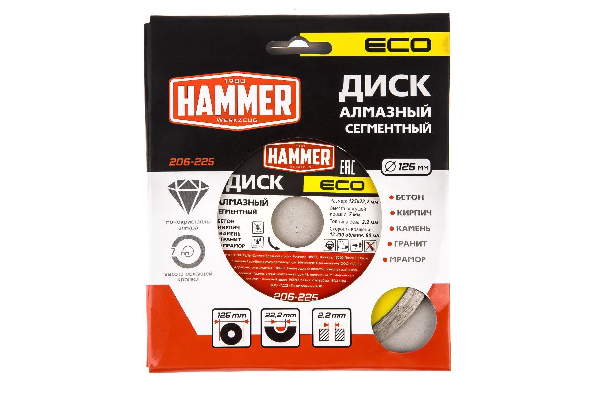 Диск алм. Hammer ECO 206-225 Сегментный Ф125х22мм