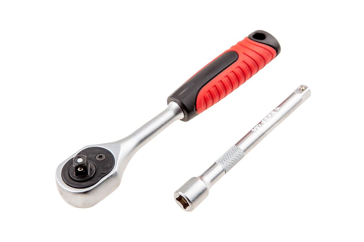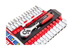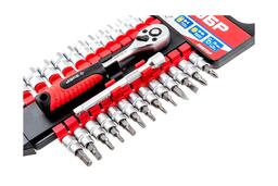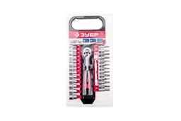 Набор ЗУБР МАСТЕР 27645-H28 биты-головки (1/4) на пластик рельсе. трещотка. удл-тель. 4-14мм.