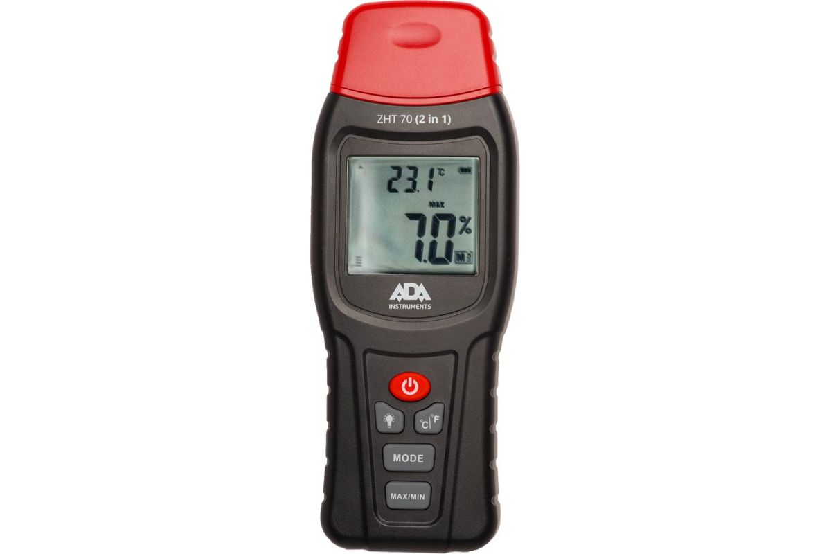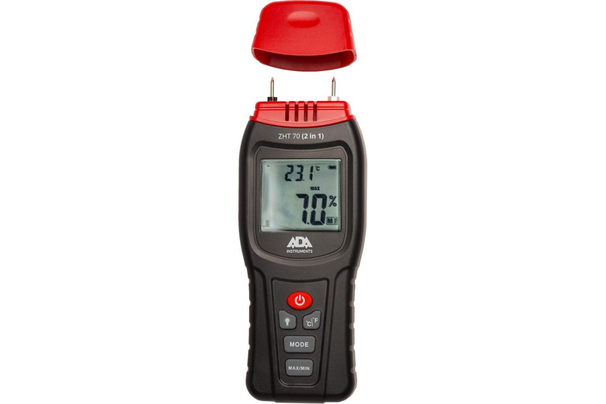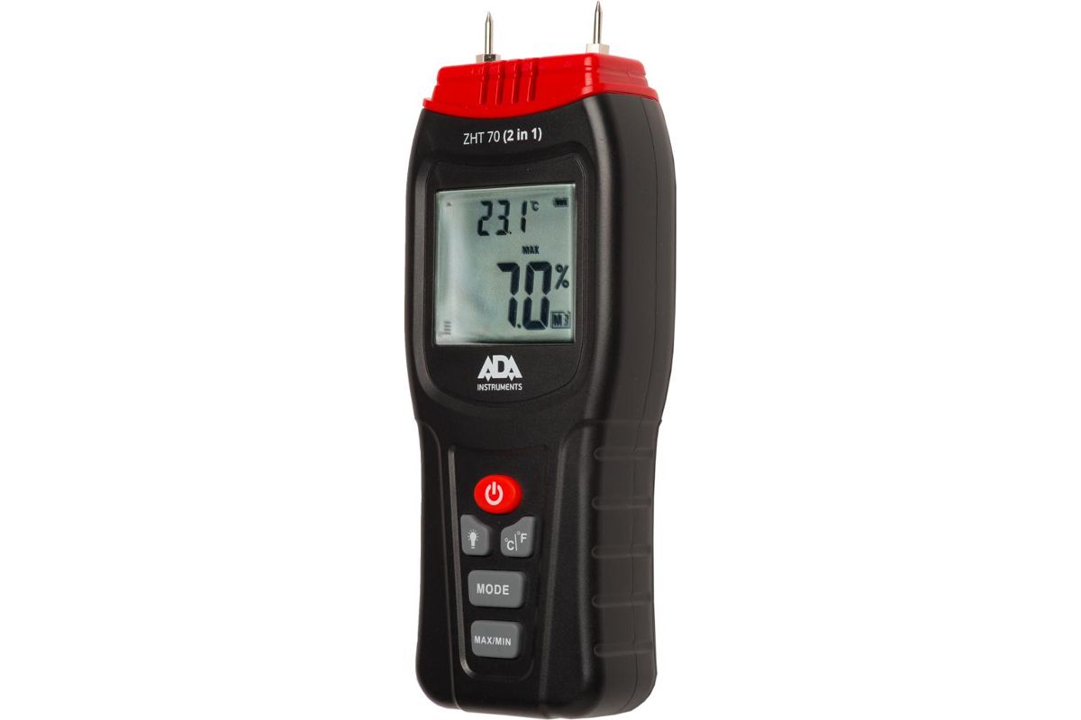 ADA ZHT 70 – прибор для измерения температуры воздуха и влажности дерева, штукатурки, бетона, гипса, цемента и других материалов. Будет полезен при строительстве, на складах пиломатериалов, сушильных установках древесины и т.д.