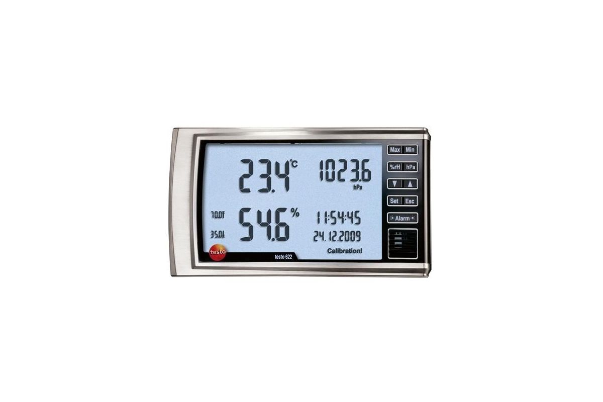 TESTO 622 – портативный термогигрометр с функцией измерения давления. Комплектуется подставкой и подвесом для установки на горизонтальную поверхность или подвешивания на стену. Может подключаться к внешнему термогигрометру. Пригодится для выполнения лабораторных исследований, калибровочных работ и настройки высокоточного оборудования.