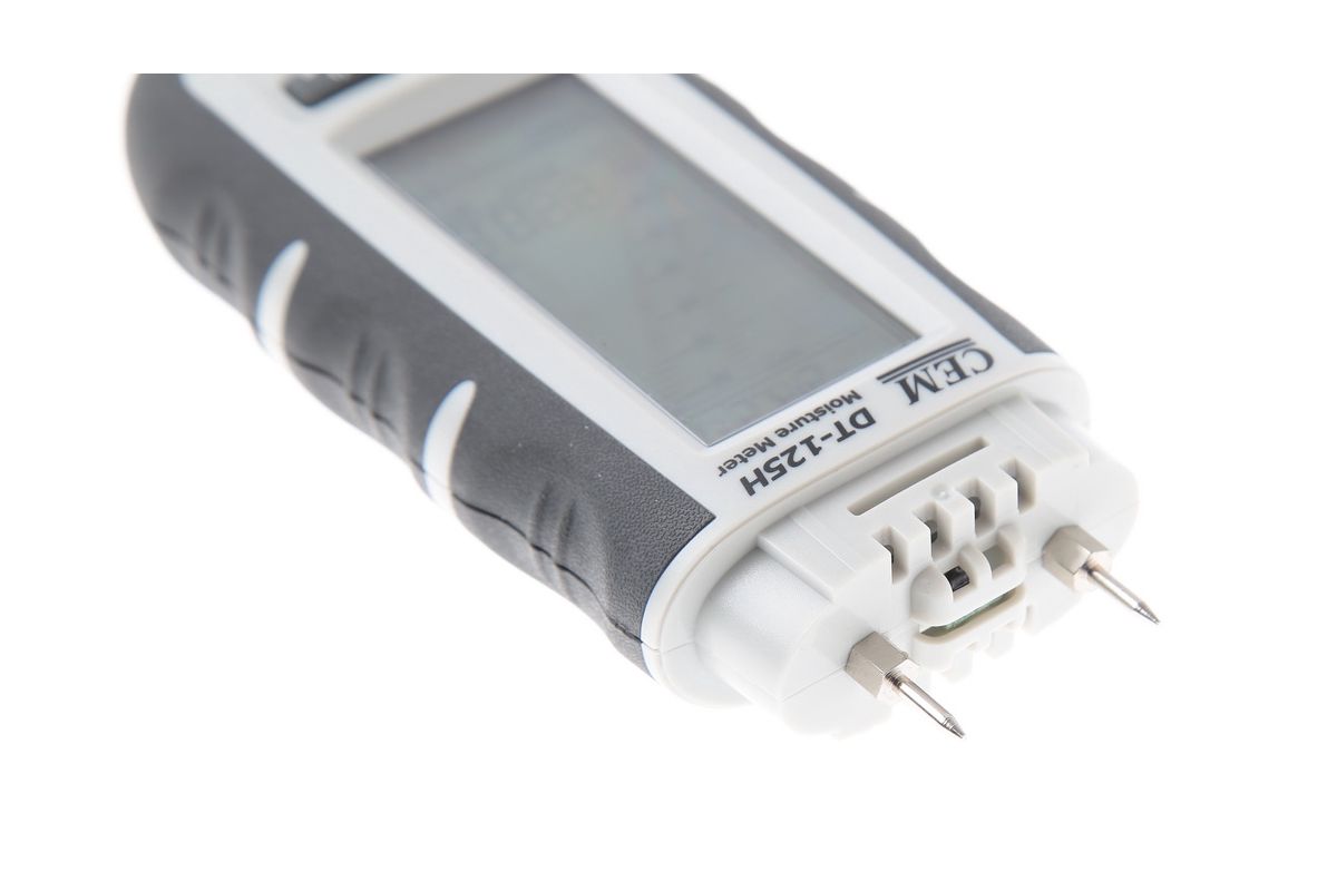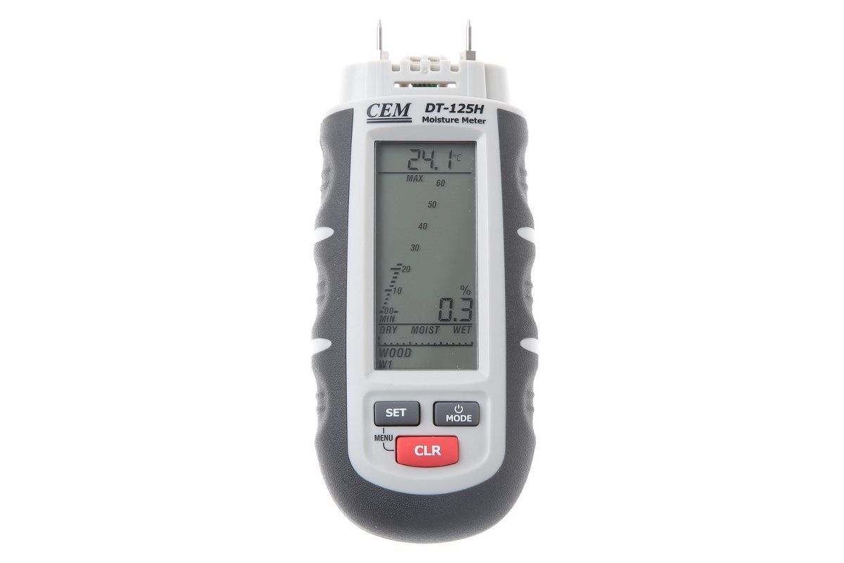 Влагомер CEM DT-125H предназначен для определения температуры и уровня влажности древесины, бумаги, картона, а также строительных материалов: цемента, бетона, строительного раствора и пр. Диапазон измерения – 1-75% влажности.