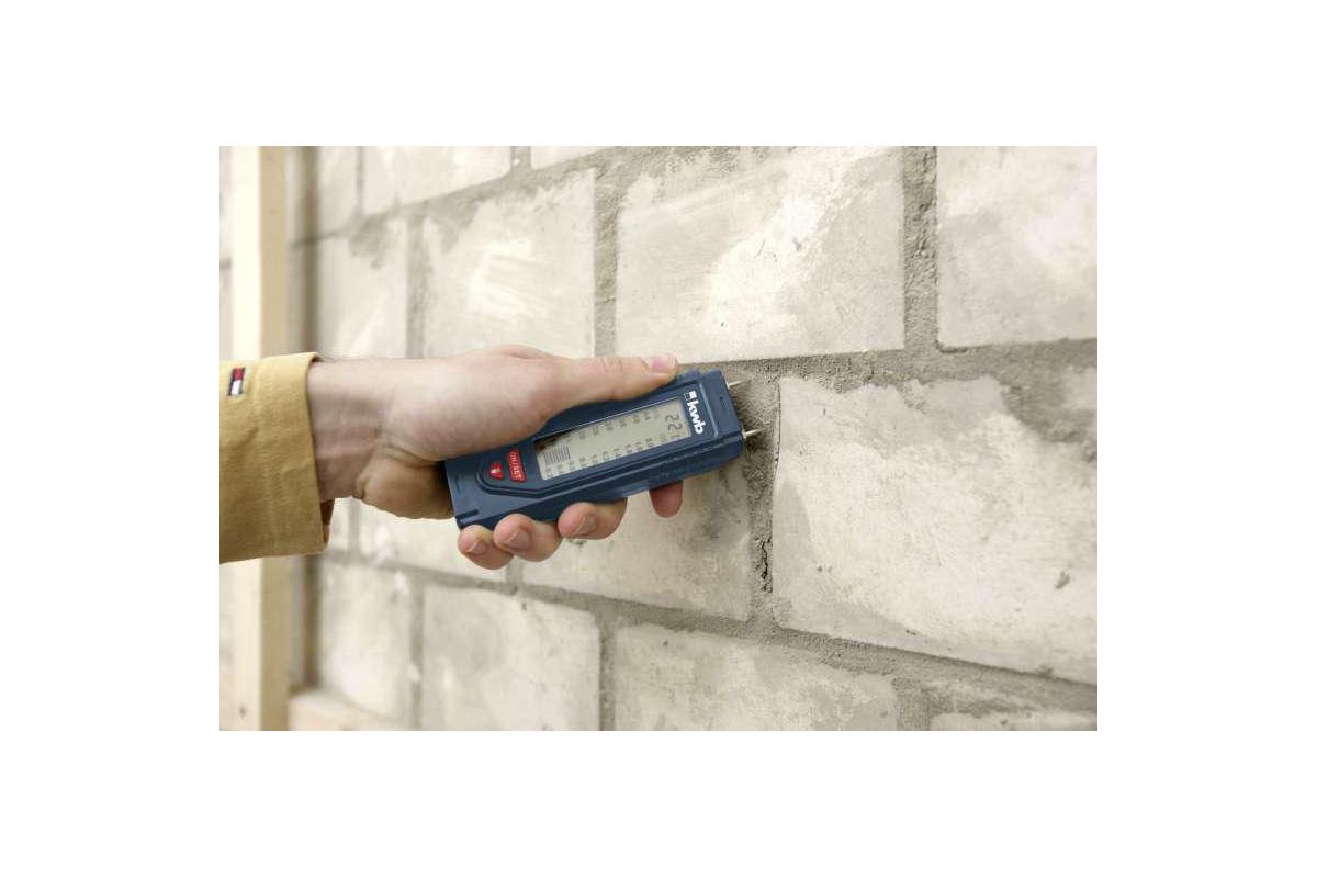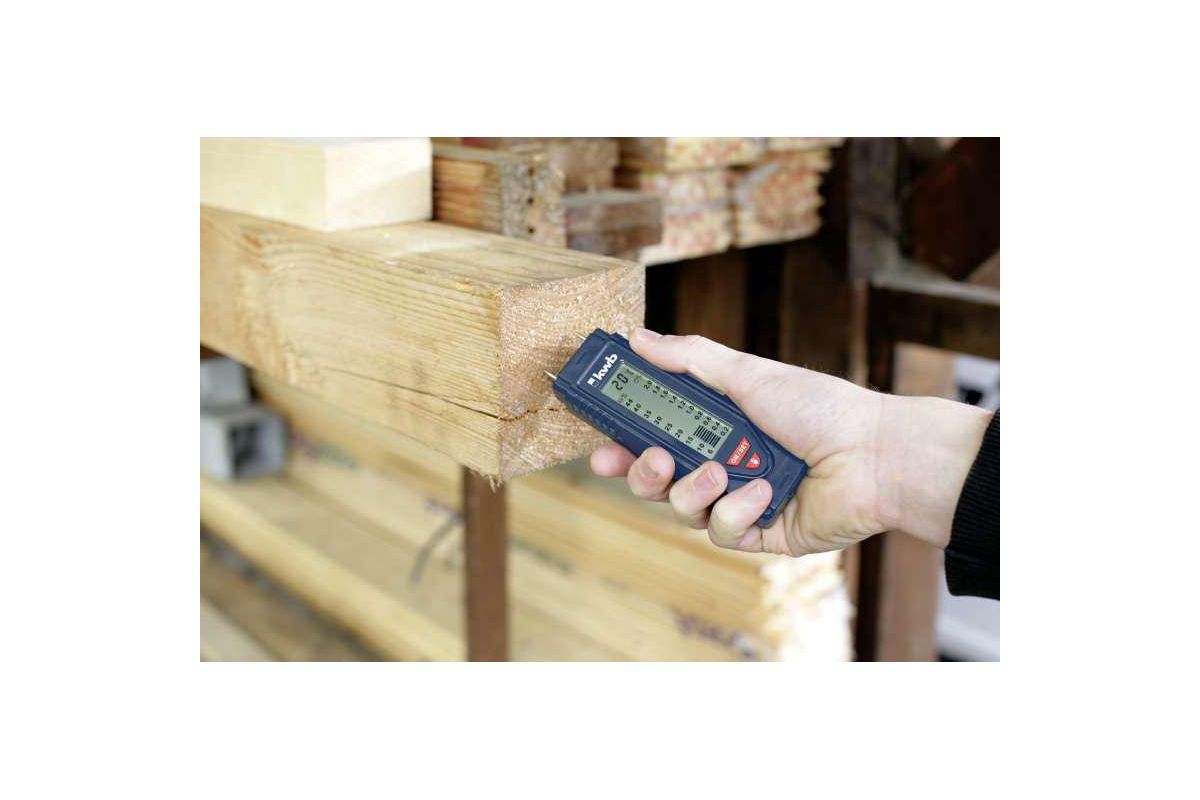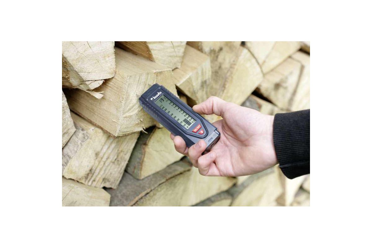 Прибор для измерения влажности древесины и стройматериалов. Универсальный измерительный прибор для определения влажности древесины и строительных материалов, вместе с 9-вольтовым элементом питания типа крона. Идеально подходит для работ по реконструкции, при устранении ущерба, причиненного водой, а также при покупке древесины.