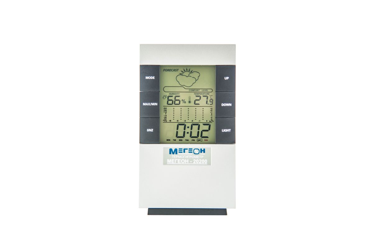 Настольный термогигрометр МЕГЕОН 20200 имеет интуитивно понятный интерфейс и ЖК-дисплей высокого разрешения, на который выводится вся необходимая информация. Интегрированная подсветка дисплея позволяет использовать термогигрометр при любых условиях освещения. Помимо этого изделие самостоятельно определяет уровень комфорта внутри помещения исходя из полученных данных температуры и влажности. Формирует гистограмму изменений температуры за последние 12 часов, а также обозначит максимальные значения параметров, влияющих на комфортное пребывание в помещении. Метеостанция также успешно заменит будильник и станет незаменимым помощником по созданию комфортных условий в домашних и промышленных строениях.