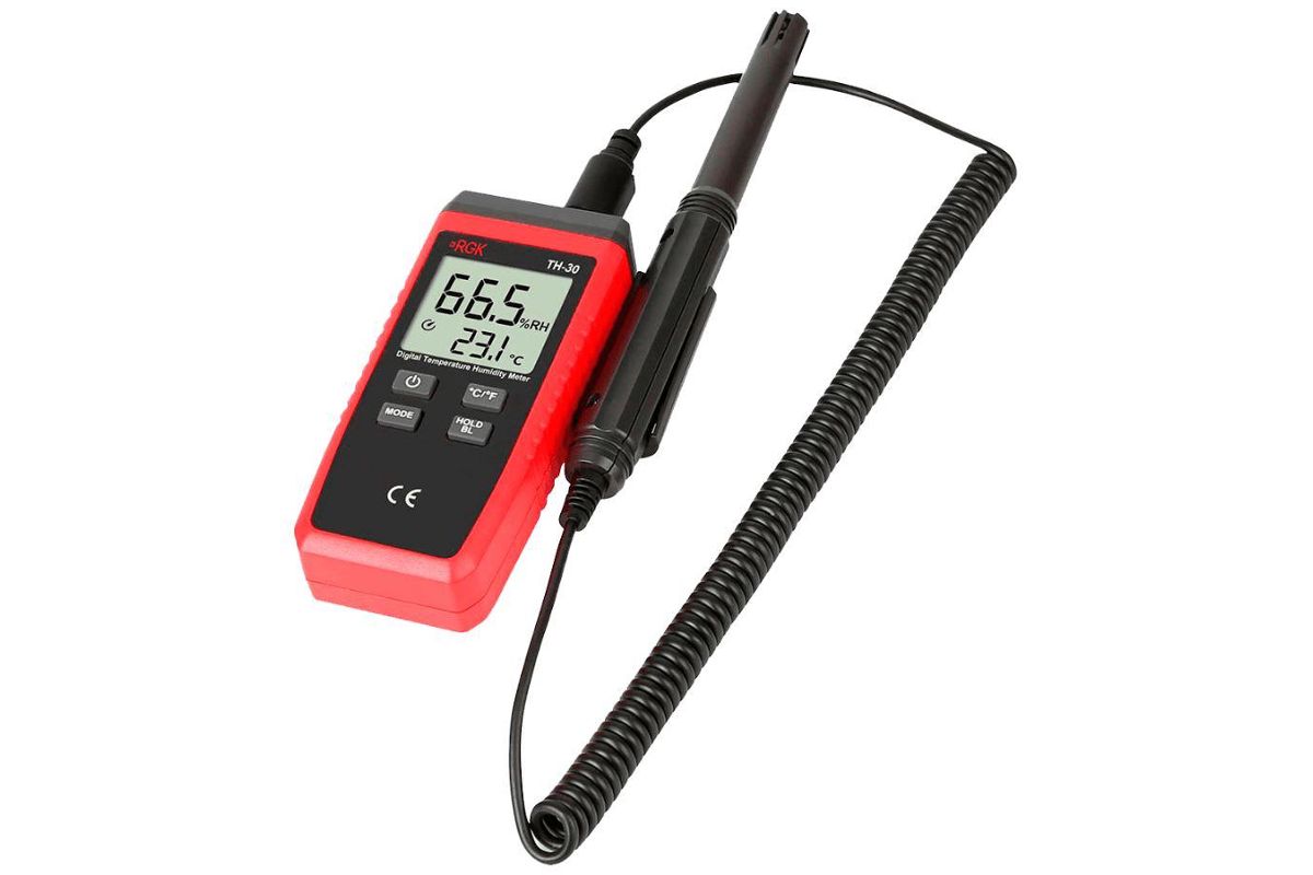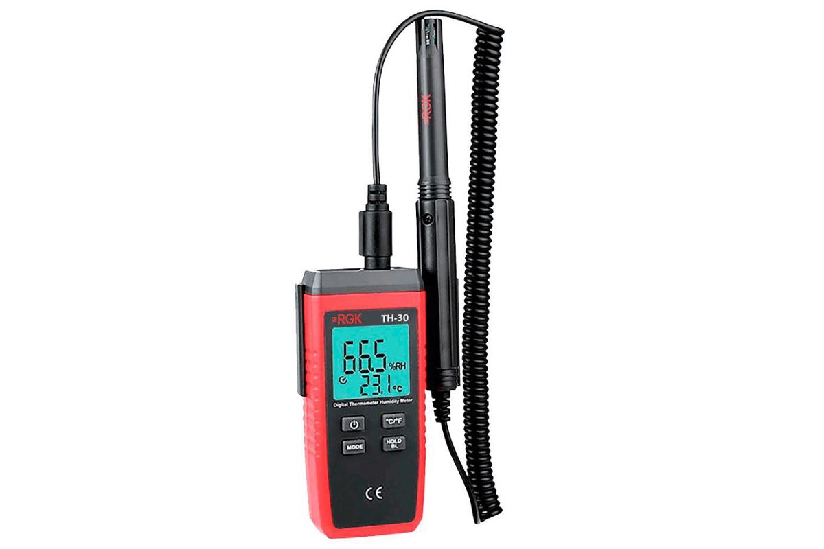 Это надежный и точный прибор для измерения климатических параметров в помещении. Главное преимущество модели - выносной датчик на длинном, гибком проводе, с помощью которого удобно проводить локальные замеры в местах с ограниченным доступом, таких, как вентиляционные каналы, технологические отверстия в стенах или плотные штабели продукции.