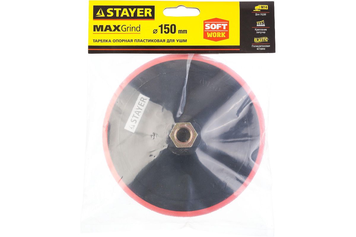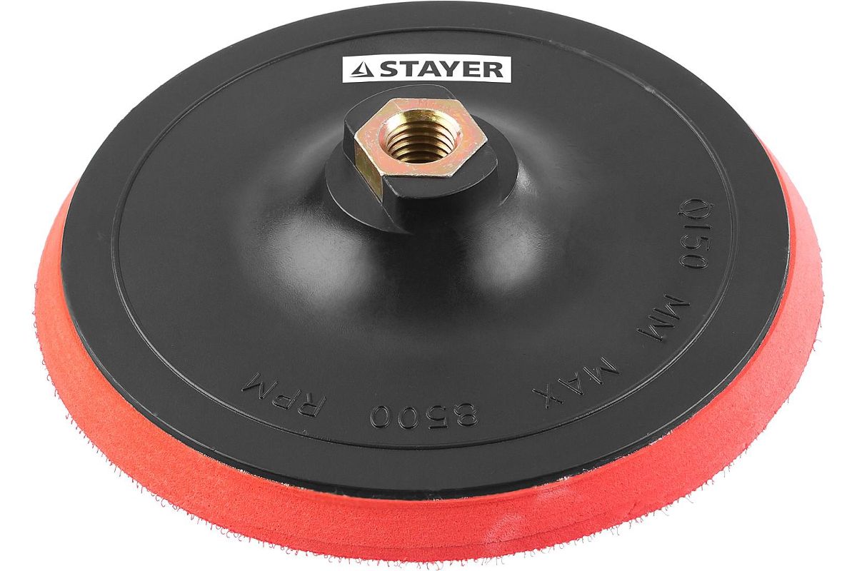 Тарелка опорная STAYER 35744-150 для ушм на липучке полиуретановая вставка 150мм м14