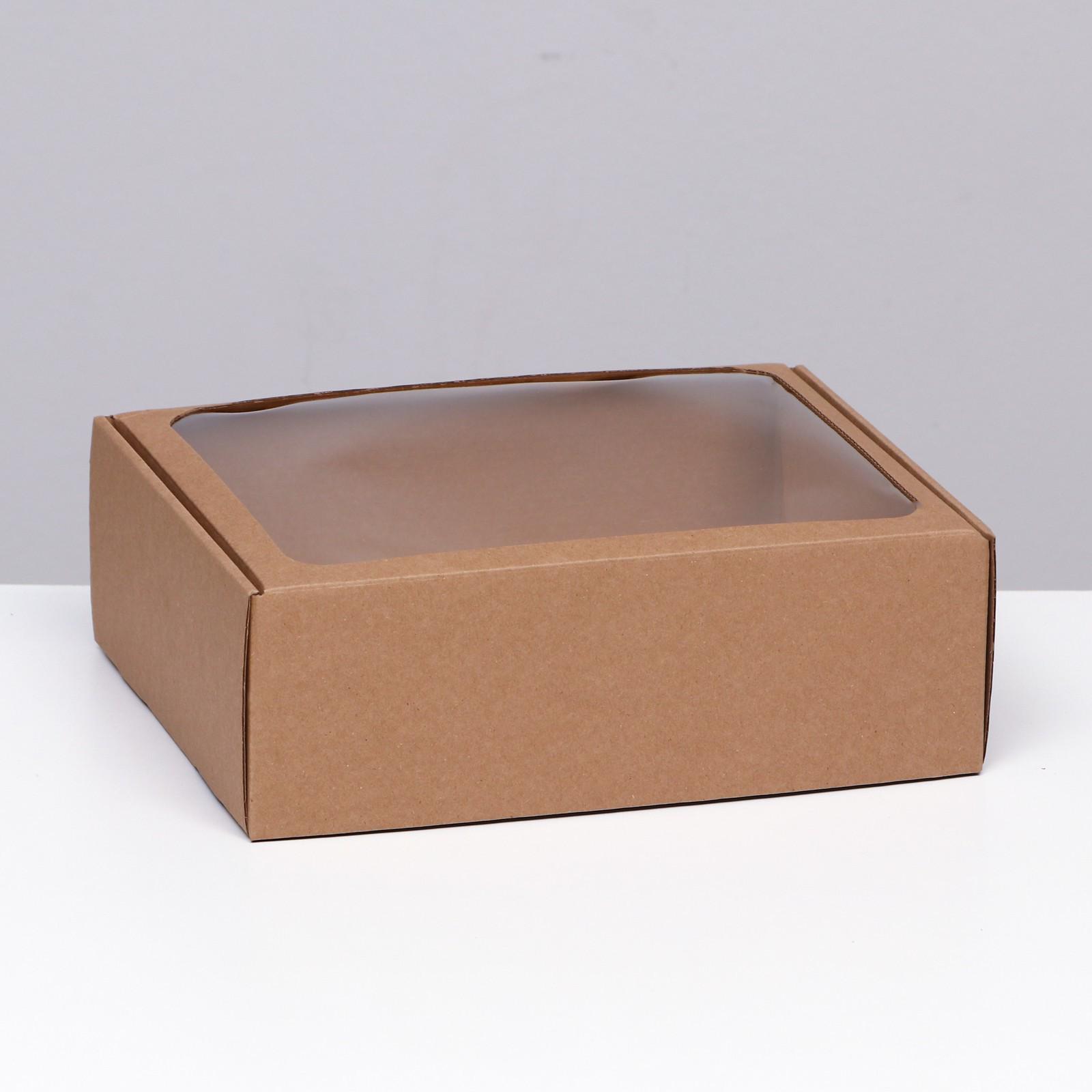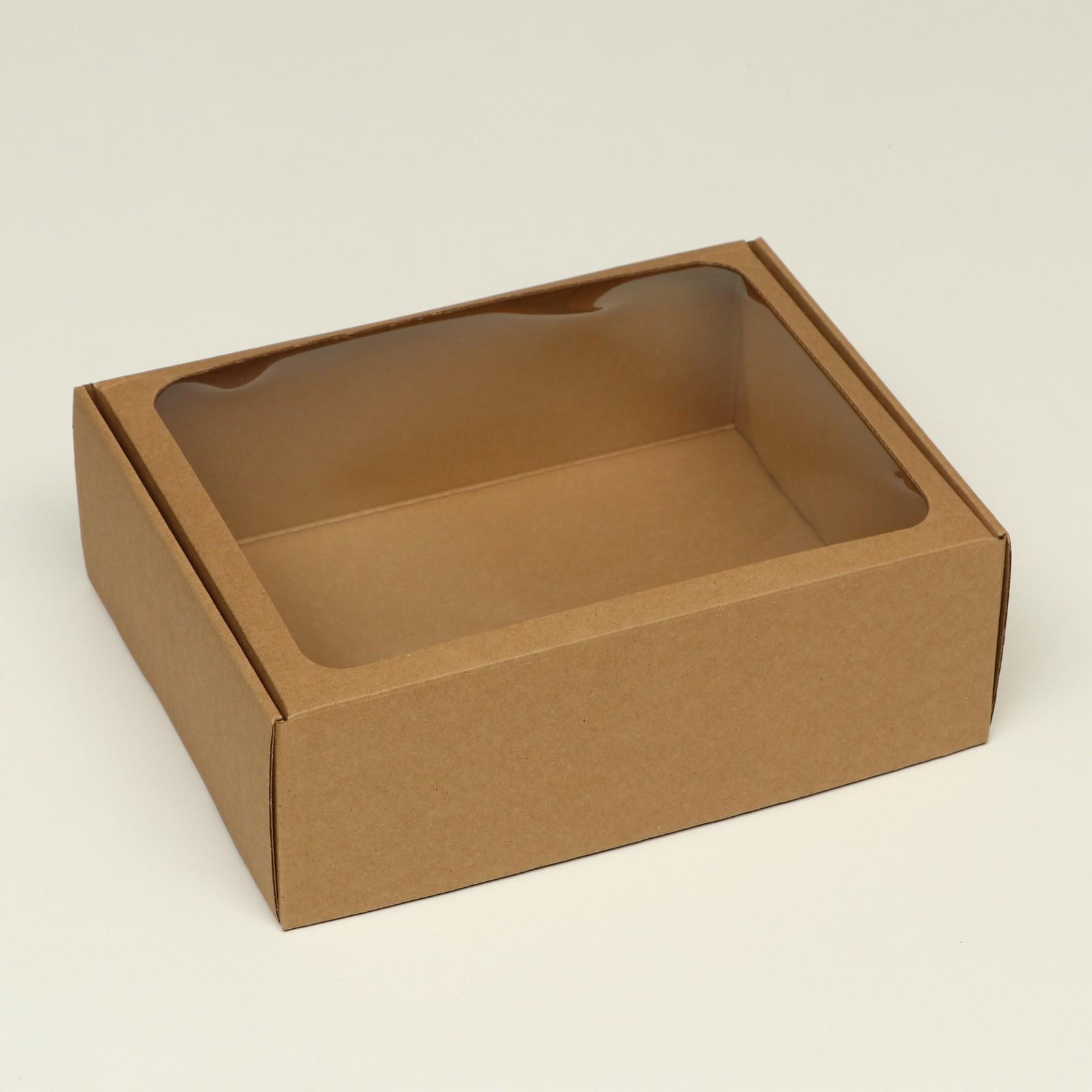 Коробка-шкатулка с окном, бурая, 27 х 21 х 9 см