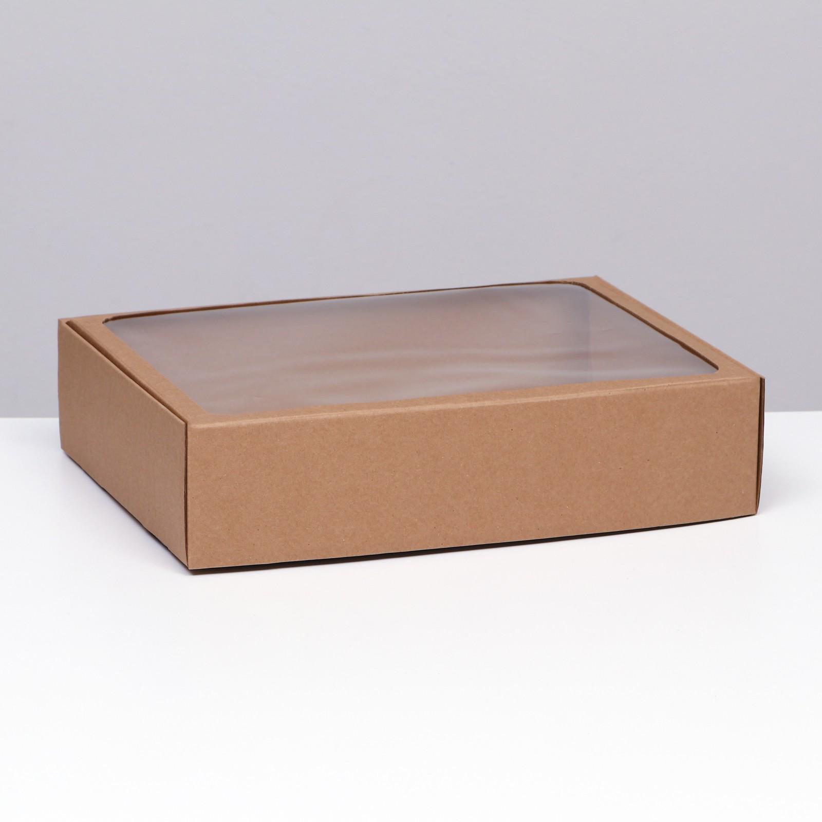 Коробка самосборная с окном, бурая, 38 х 28 х 9 см