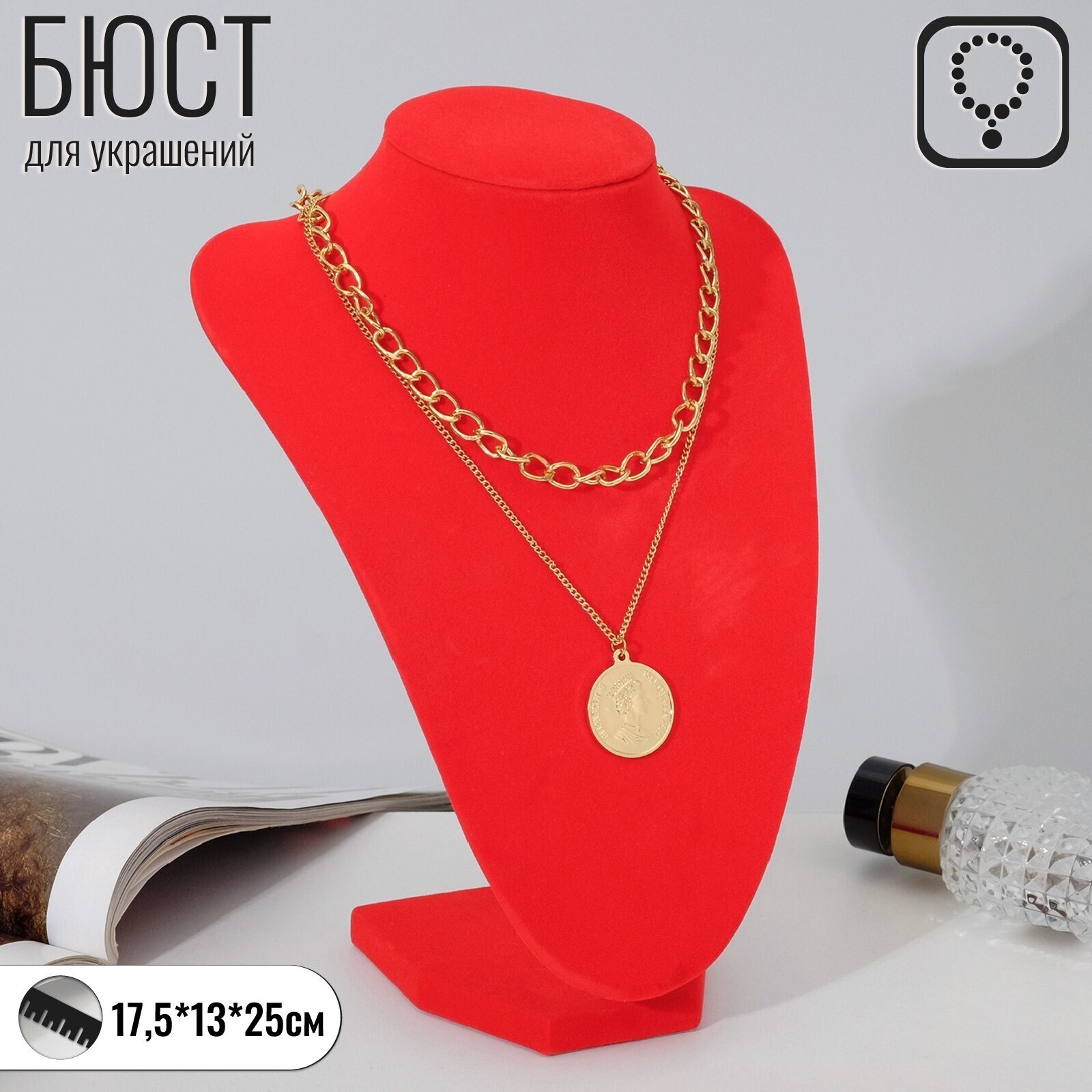 Бюст для украшений, 17,5 х 13 х 25 см, h=23 см, цвет красный