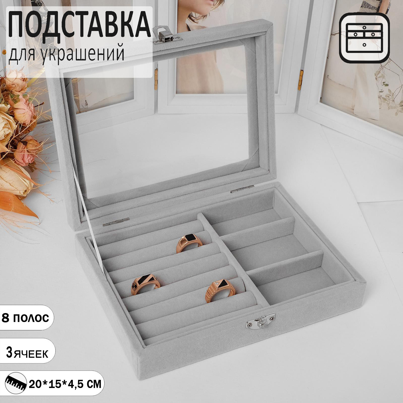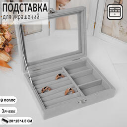 Подставка для украшений "Шкатулка", 7 рядов, 3 ячейки, 20*15*4,5, цвет серый