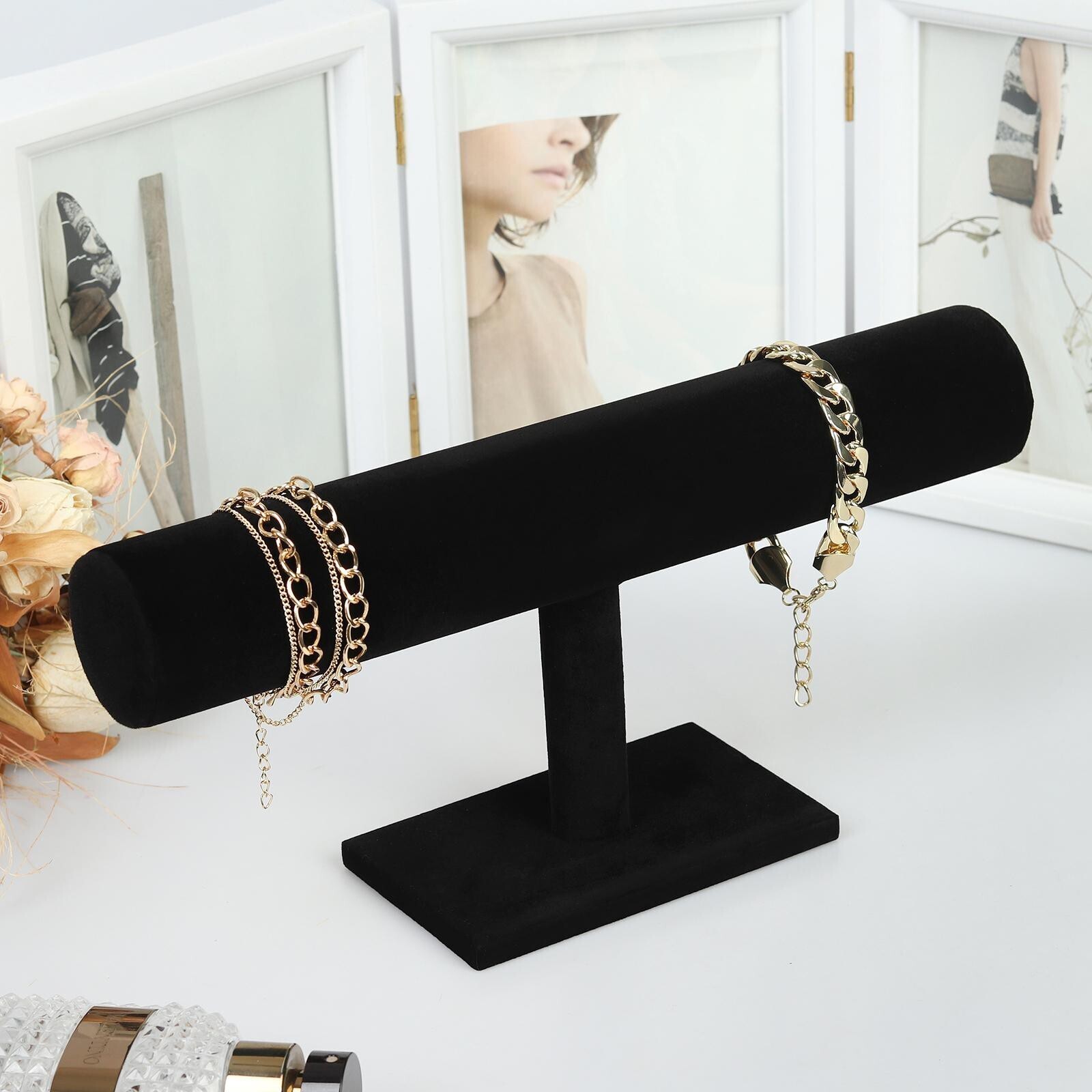 Подставка для часов, браслетов, 30*10*15 см, d=5 см, цвет чёрный