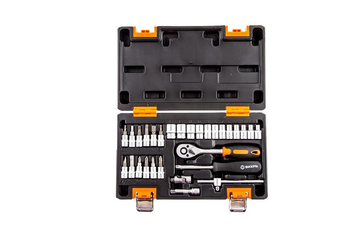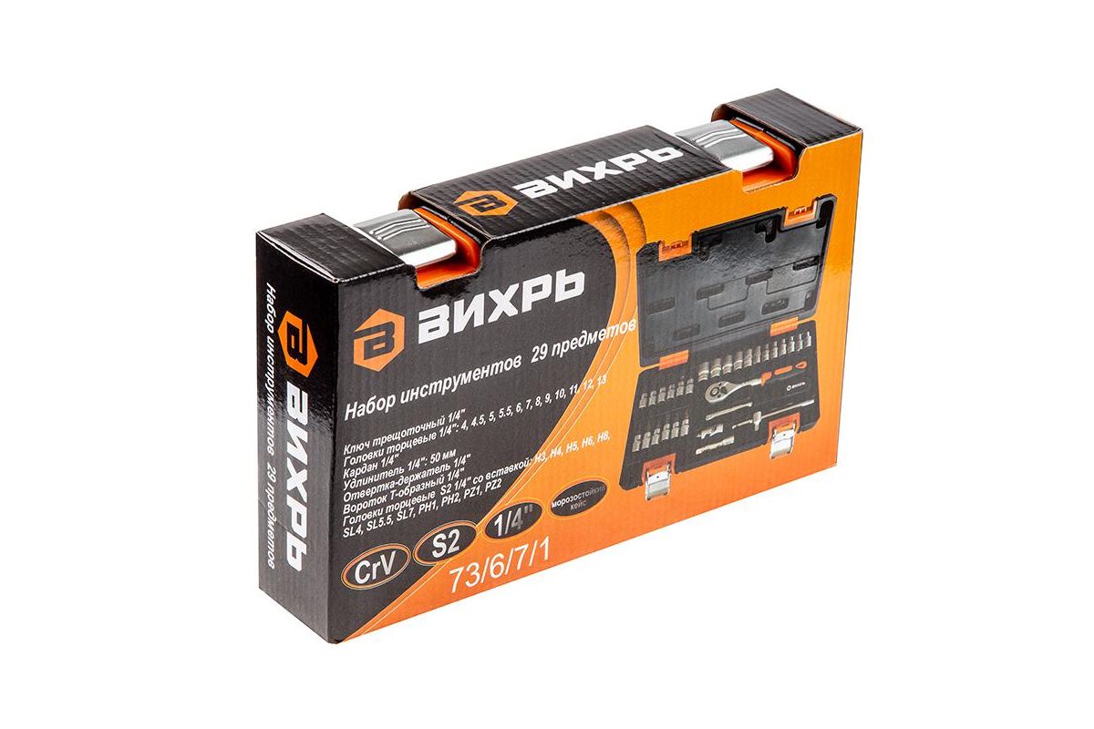 Набор инструментов ВИХРЬ 73/6/7/1 1/4'' , CrV, пластиковый кейс 29 предм