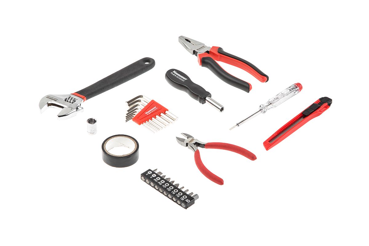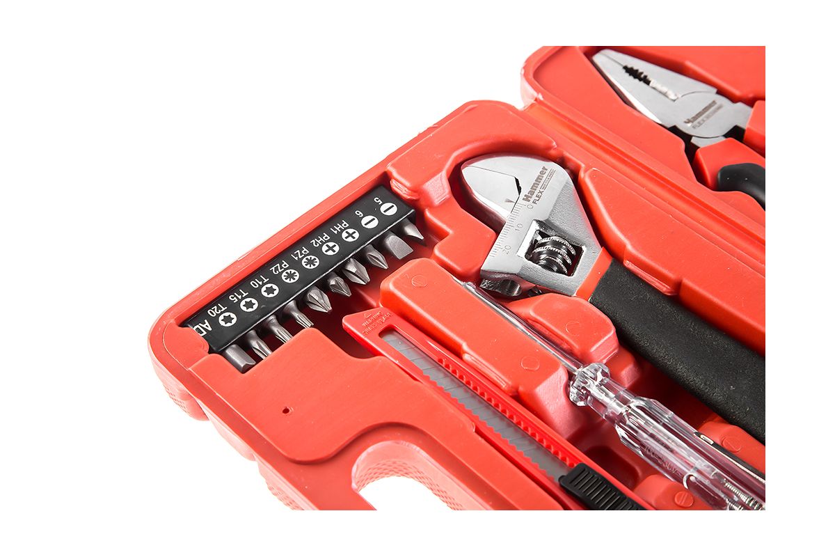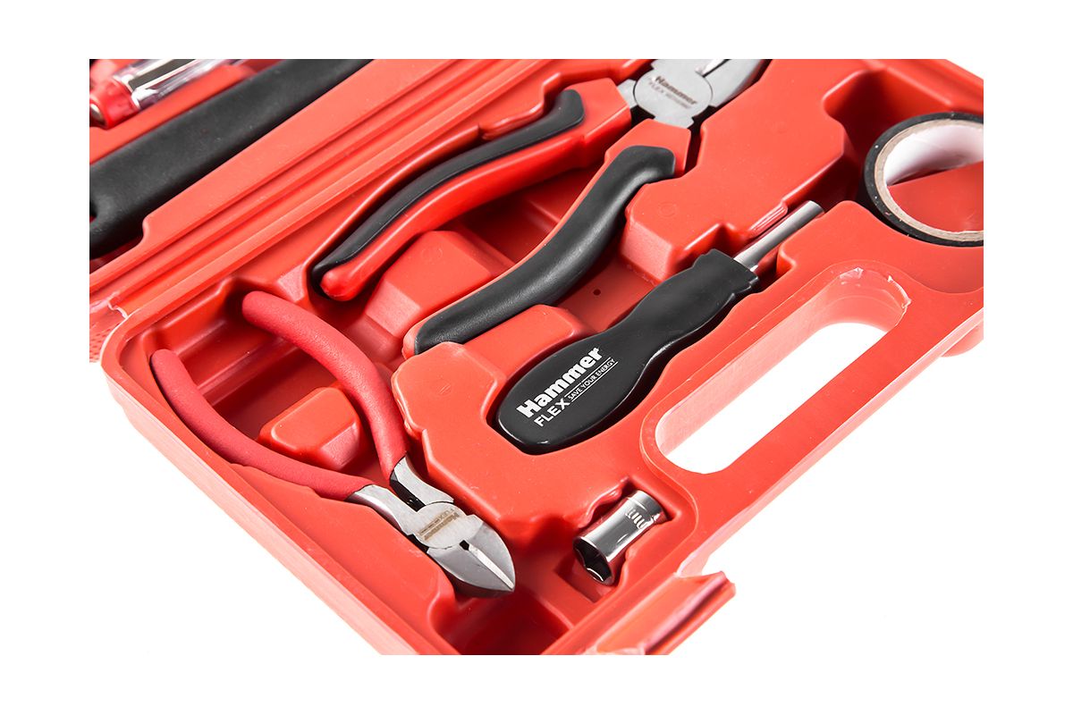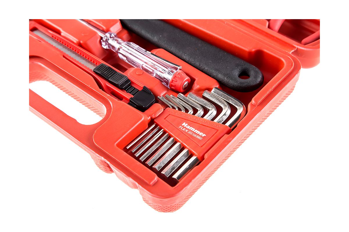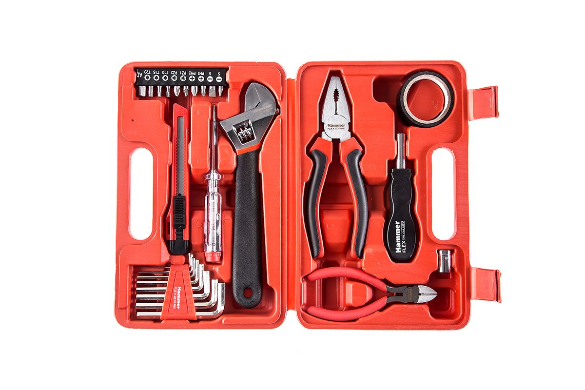Набор инструментов HAMMER 601-040 предназначен для домашнего мастера. Пригодится на даче, в квартире или автомобиле. Подойдёт для замены розетки, сборки мебели, мелкого бытового ремонта. Включает в себя 25 самых востребованных инструментов – отвёртки, кусачки, плоскогубцы и т.д. Все инструменты хранятся в пластиковом кейсе.