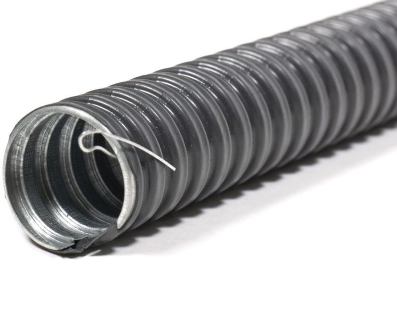 Металлорукав типа Р3-ЦП нг LS с протяжкой - негерметичный металлорукав в ПВХ изоляции, изготовленный из металлической оцинкованной ленты, предназначен для механической защиты электрических или информационных кабелей в трубных системах прокладки кабеля повышенной гибкости.