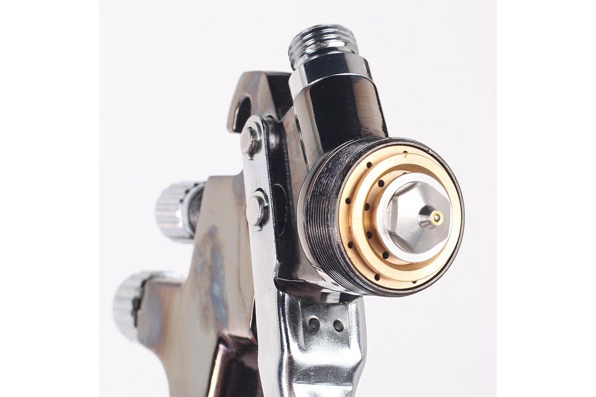 Расход воздуха: 175 л/мин; Объем бачка для краски: 0.5 л. верхний; Давление: 1.5 бар; Диаметр сопла: 1,5 мм; Ширина факела: 200-280 мм; Соединение: быстросъем; Вес: 0.6 кг;