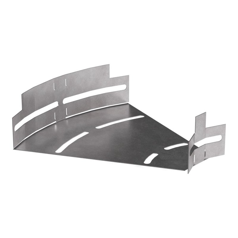 Обеспечивает плавный переход горизонтальной кабеленесущей линии между лотками металлическими в диапазоне от 0 до 45 градусов.