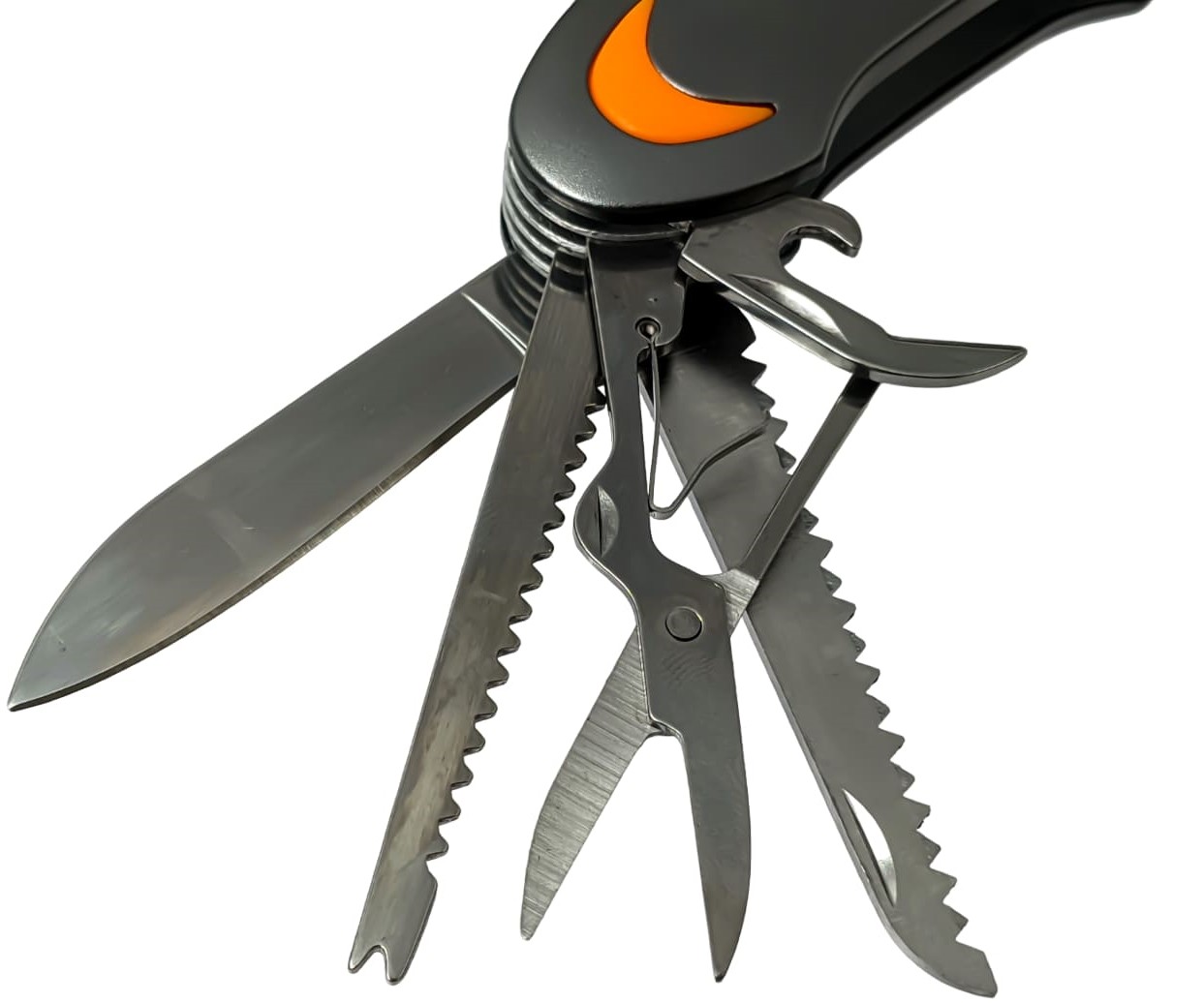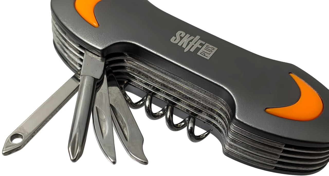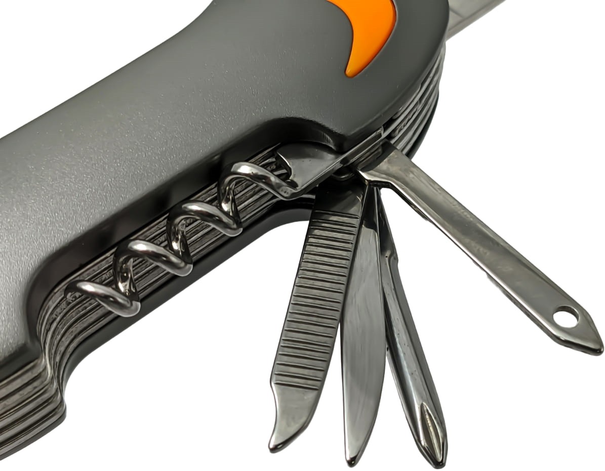 Функции и возможностиконсервный ножнож для чистки рыбыоткрывалка для бутылокштопоркрестовая отверткашлицевая отвертканожницыпилканапильникшило-швайкадля извлечения крючков, ледокол