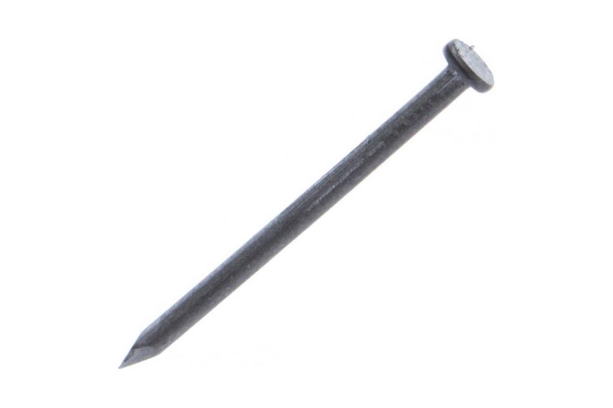 Гвоздь представляет собой длинный и прямой стержень с небольшими неровностями рядом со шляпкой, что улучшает качество соединения.