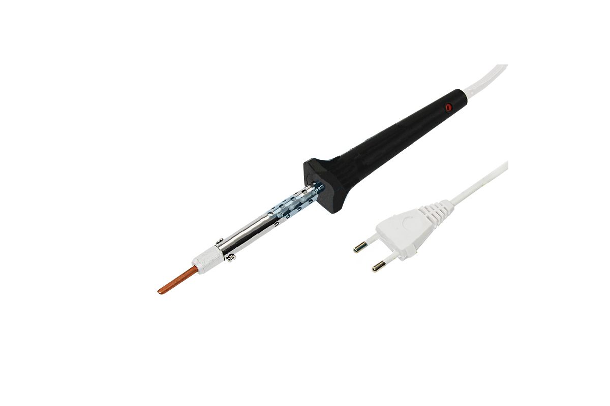 Паяльник с керамическим нагревателем 220В 40Вт предназначен для ручного монтажа радиоэлементов. Его можно использовать как в домашних условиях, так и в профессиональных лабораториях на производстве. Прибор выполнен с керамическим нагревательным элементом – керамические стержни, нагревающиеся при подаче напряжения к их контактам. Такая наиболее усовершенствованная конструкция паяльника обеспечит, при бережном отношении, эксплуатацию в течение долгих лет и более быстрый нагрев паяльного жала, чем у нихромового паяльника.
