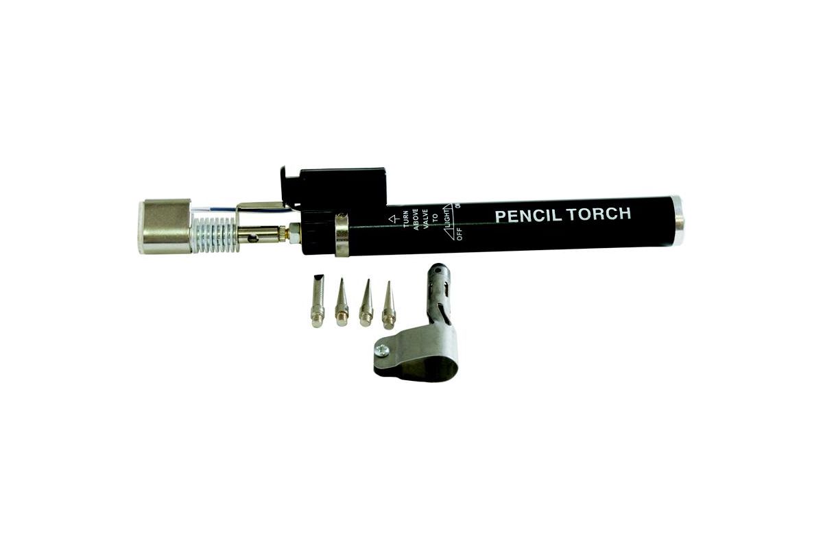 Горелка универсальная бутановая Калибр ГУБ-150 (150Вт,встроенный клапан для заправки,пьезоподжиг,паяльные насадки)
