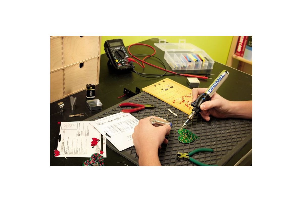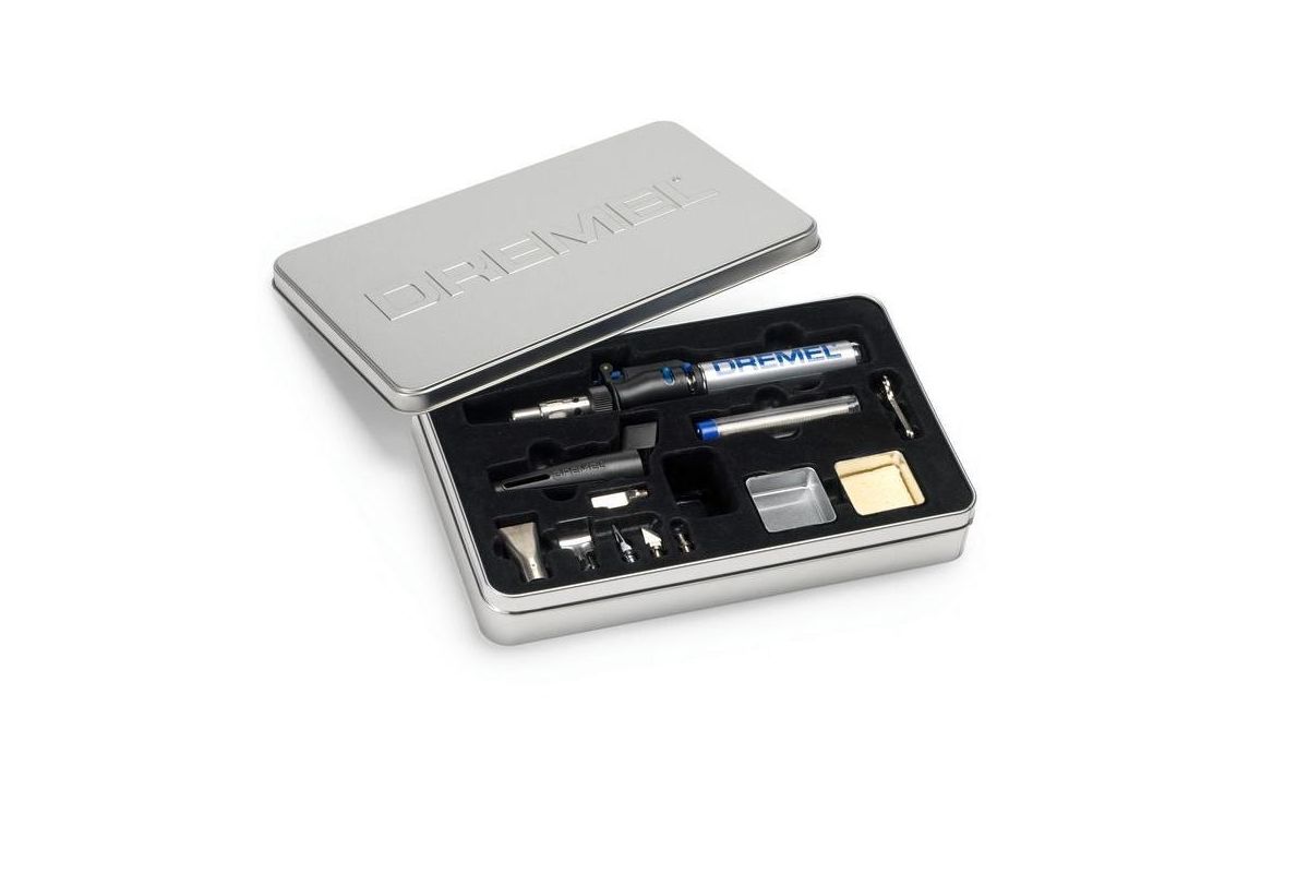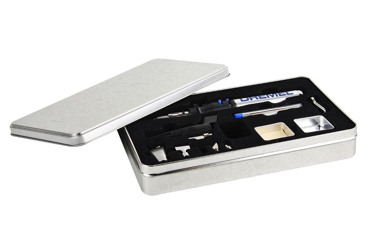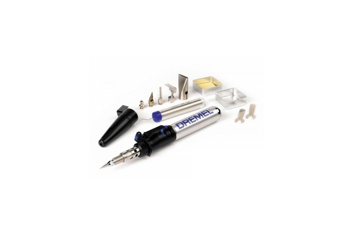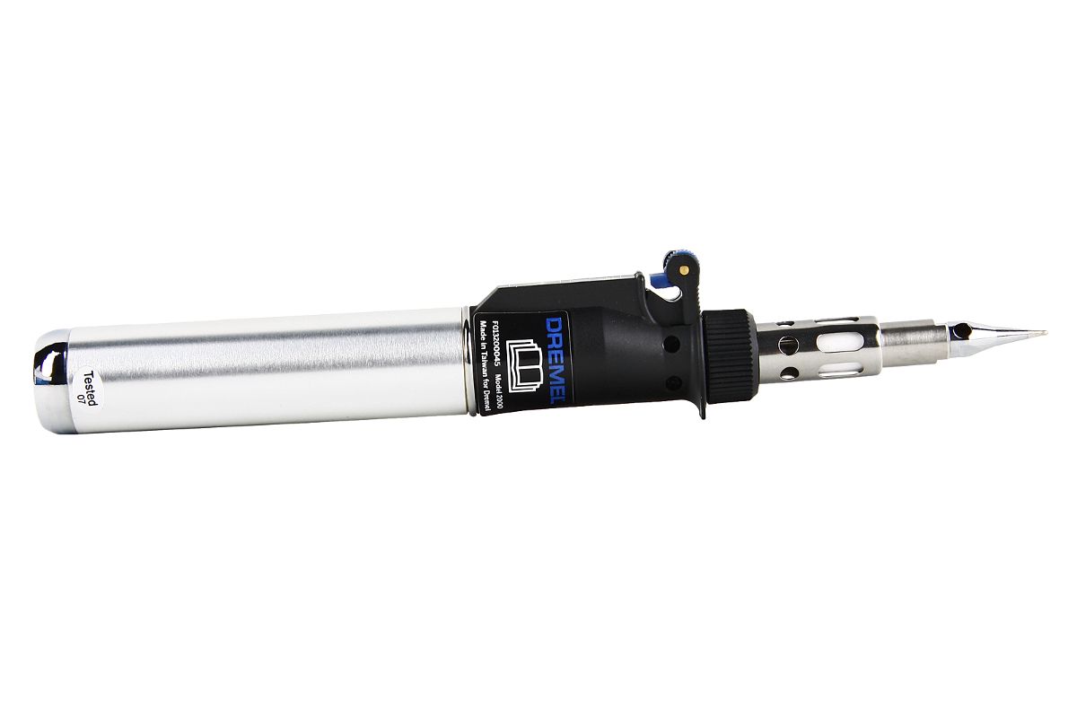 DREMEL 2000 VERSATIP HOBBY – газовый паяльник для работы на жидком бутане. Эта модель отличается максимально быстрой перезарядкой. Для подогрева паяльнику необходимо не более 20 секунд. Благодаря этому, данный инструмент можно использовать даже на улице. Максимальная температура нагрева – 1200 °C. Вес модели – 0,81 кг. Паяльник поставляется в коробке.
