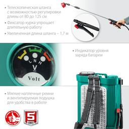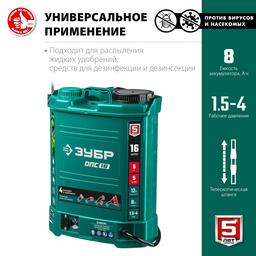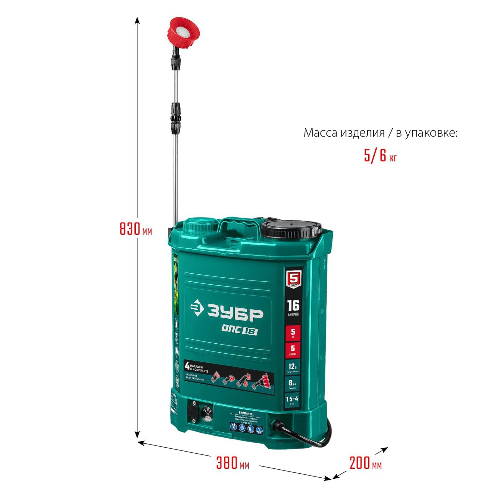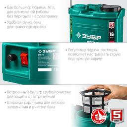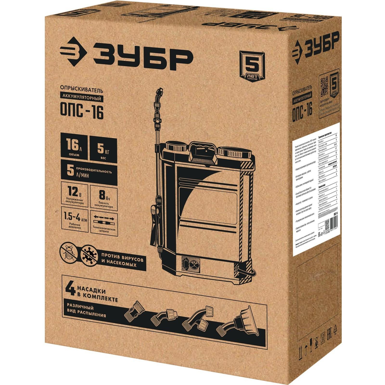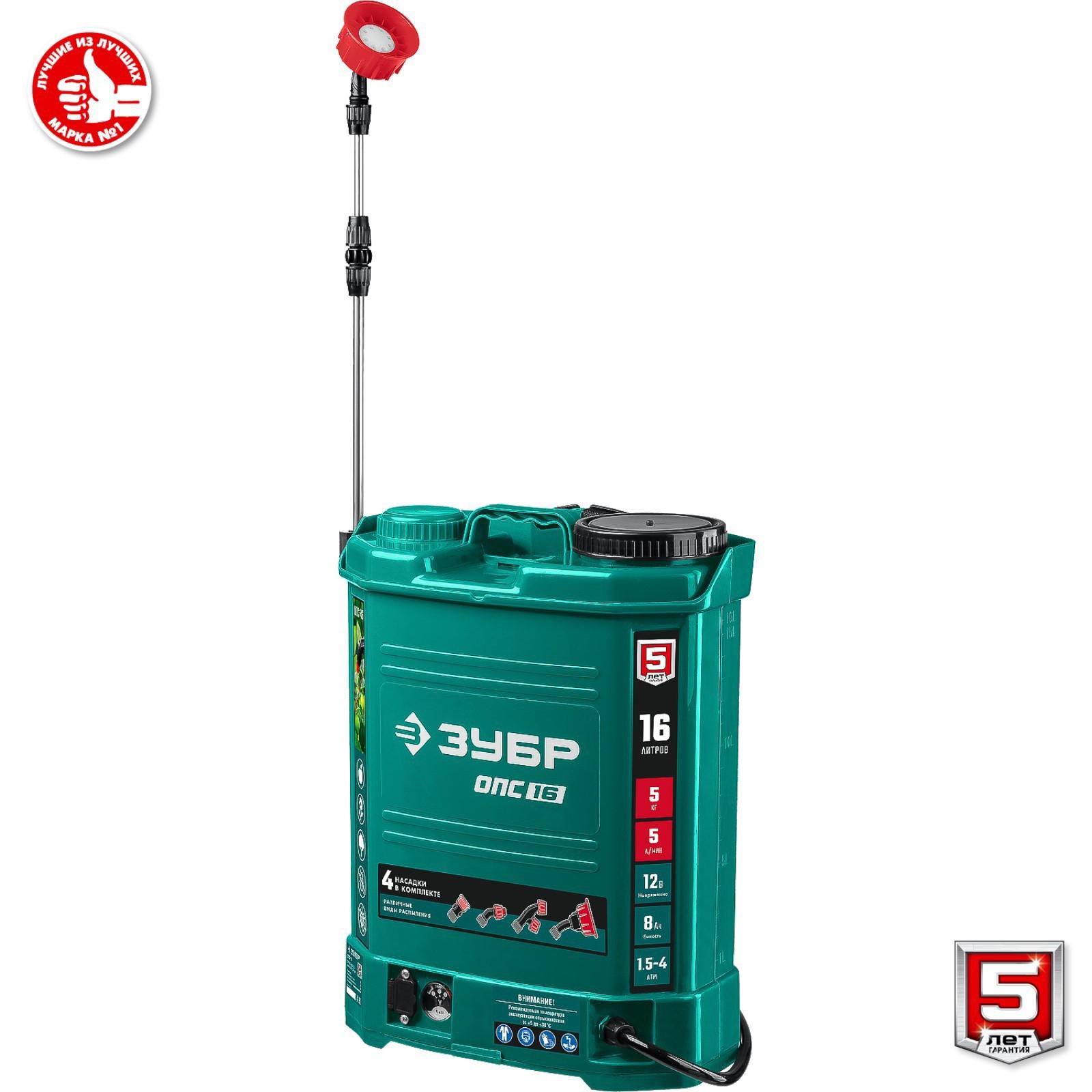 Опрыскиватель аккум. ЗУБР ОПС-16, 12 В, 8 Ач, свинцово-кислотный, 5 л/мин, 1.5-4 бар, 16 л