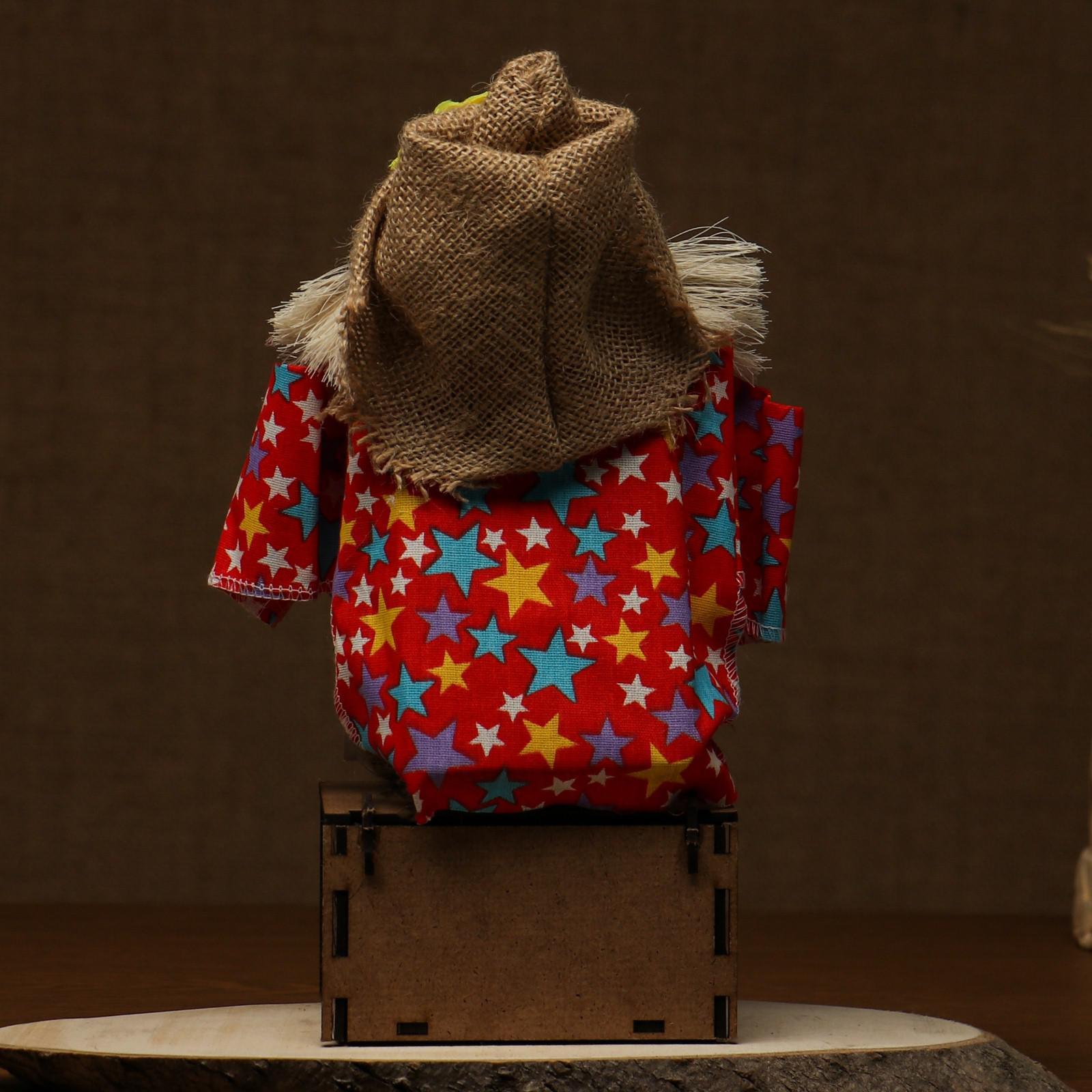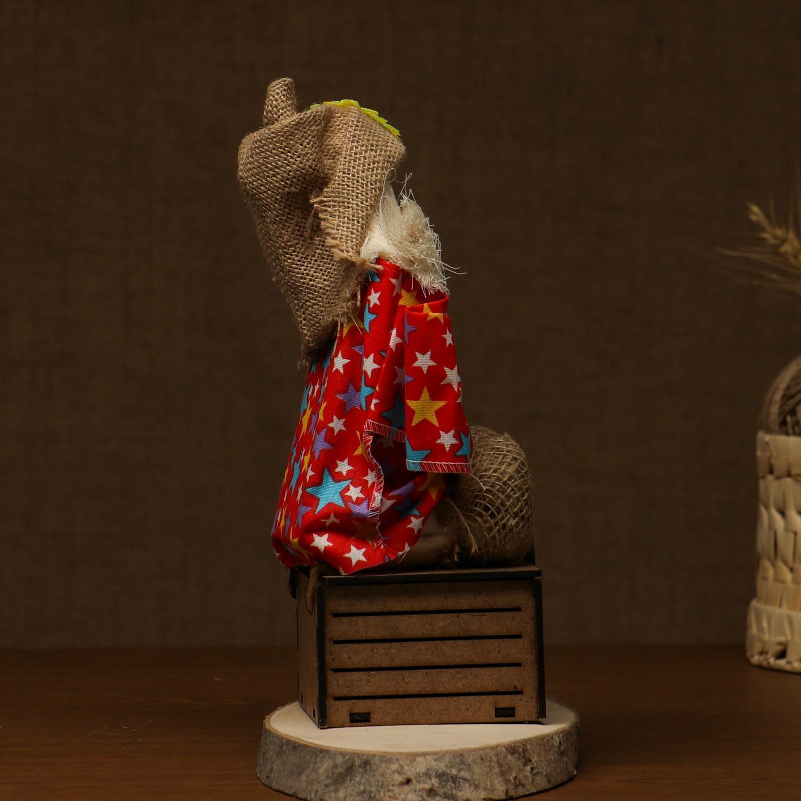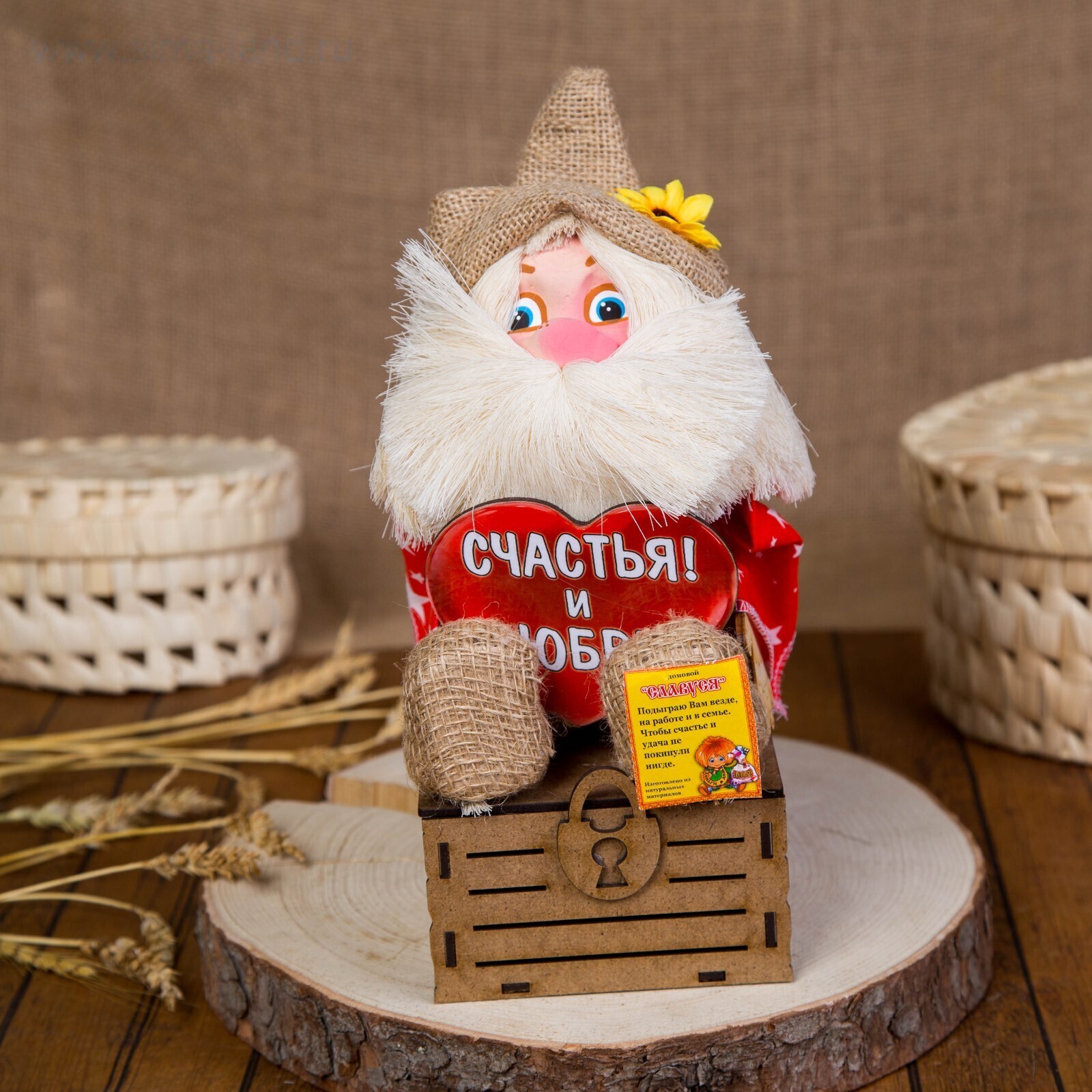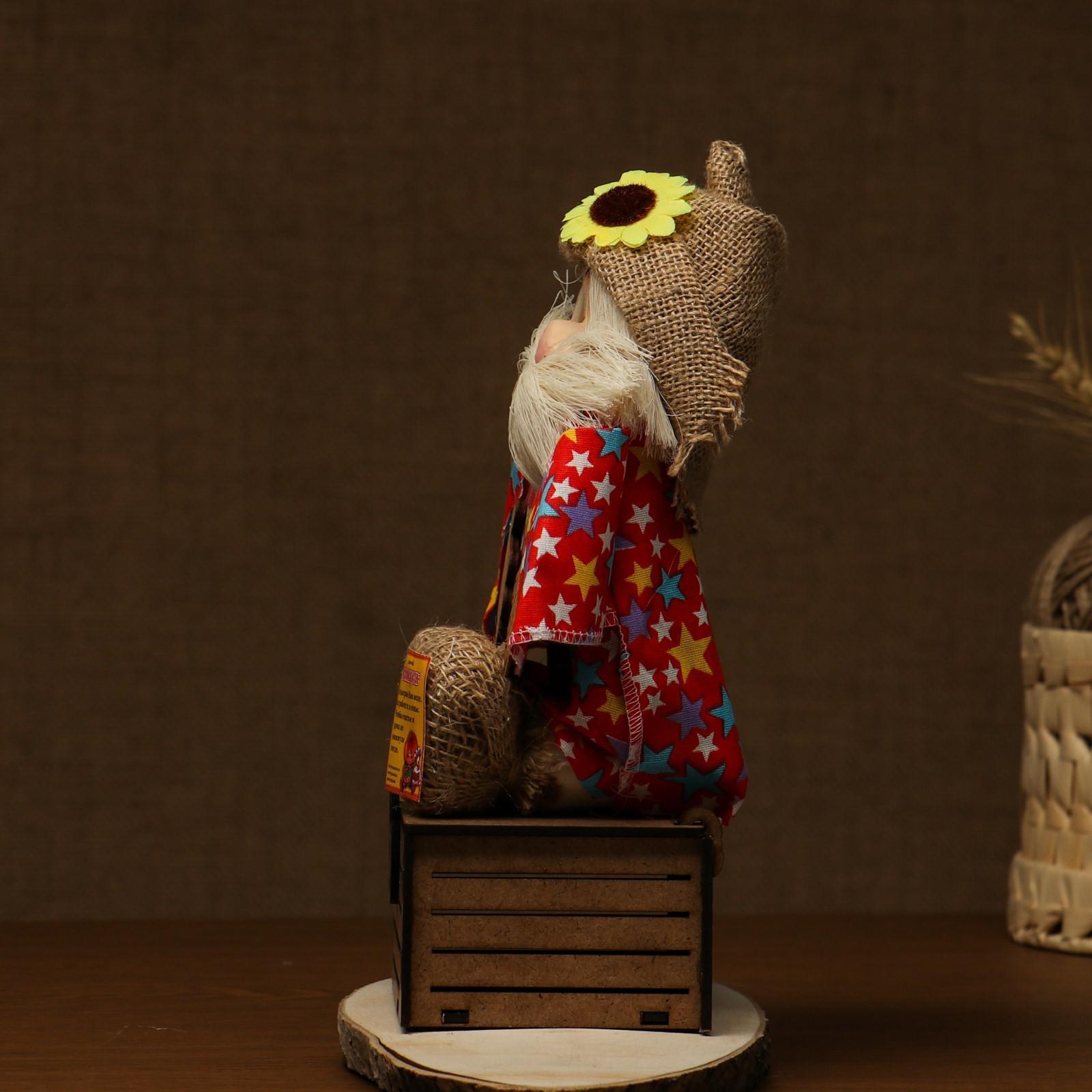 Оберег-домовой "Славуся в льняном колпаке, на сундуке с сердцем", средний, микс