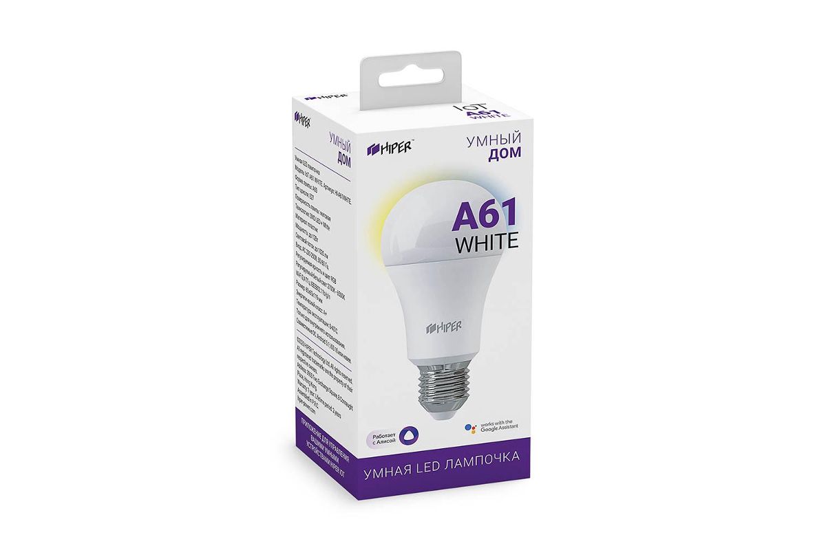 Умная LED лампочка Wi-Fi HIPER IoT A61 White, E27, AC 100-250В, 2700K-6500K, 1020 лм