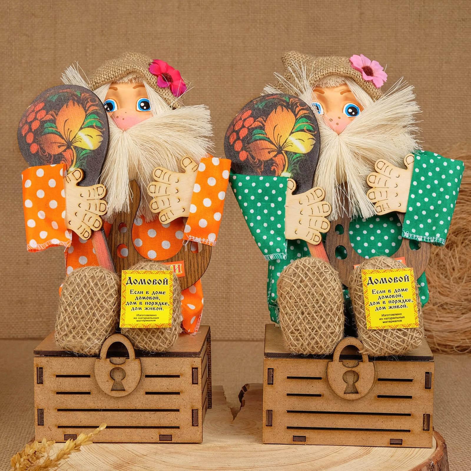 Каждый домовёнок уникален и имеет своё значение и смысл. Изготовлены домовые и обереги из природных материалов и по старинным технологиям. Для их создания используют такие материалы как, древесина, мешковина, сизаль, цветы, семечки и другие декоративные элементы. Все эти материалы в особом сочетании приносят успех, достаток, любовь, благополучие, как в домашнее, так и офисное помещение.