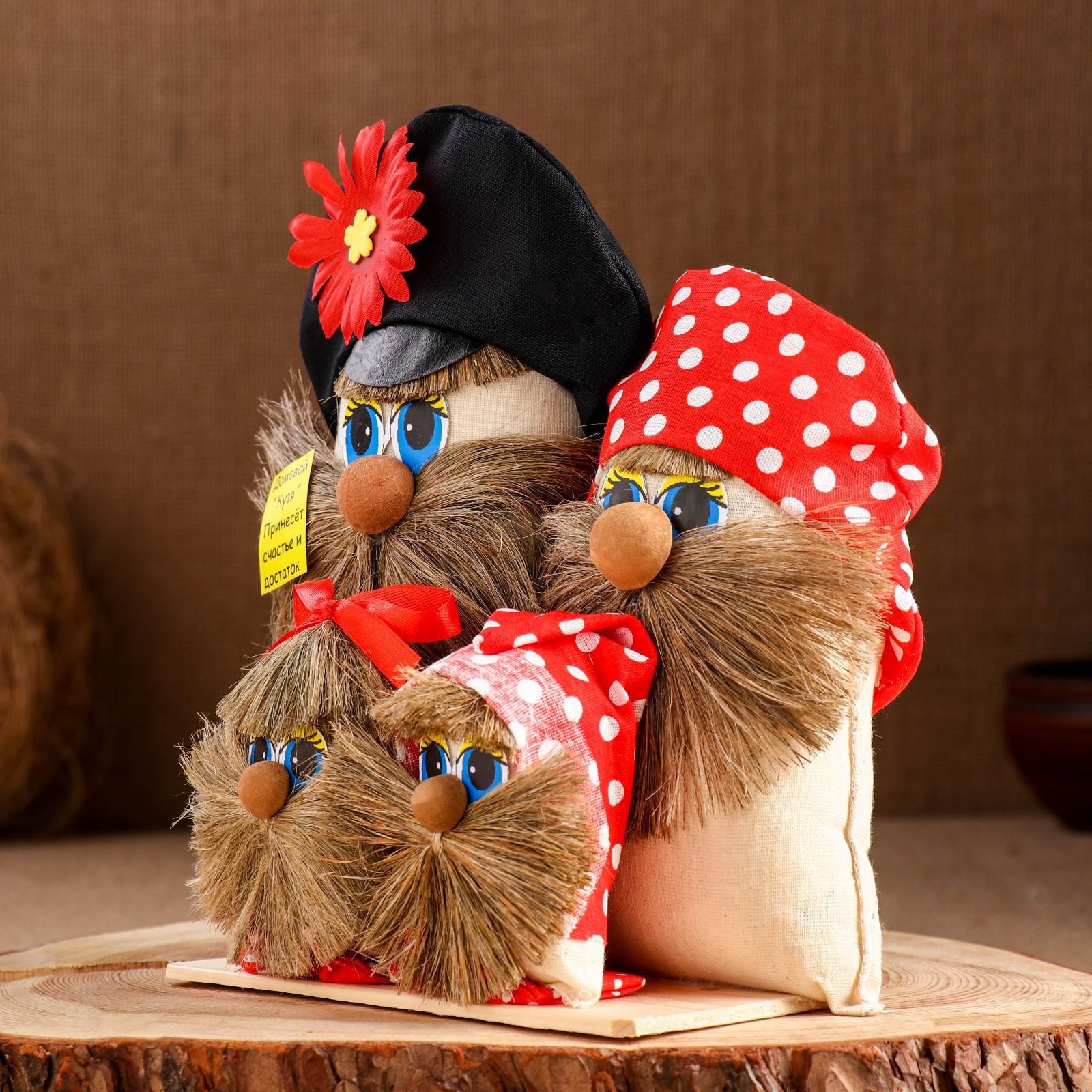 Оберег "Домовята Мама,папа, сын и дочка", лён, 23-24 см