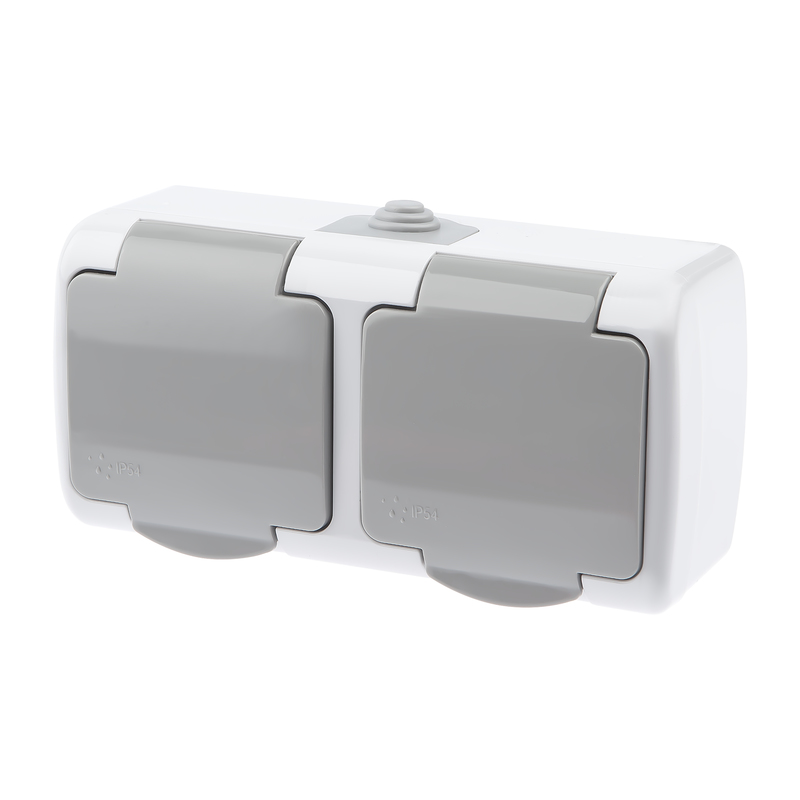 Розетка 2х2P+E Schuko шторки, 16А-250В, IP54, ОУ, Atlantic, серый
