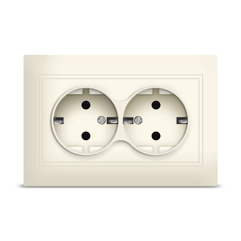 Розетка двухместная UNIVersal серия Севиль с/з, с/у, 16А, 220В, слоновая кость (ivory) (еврослот)