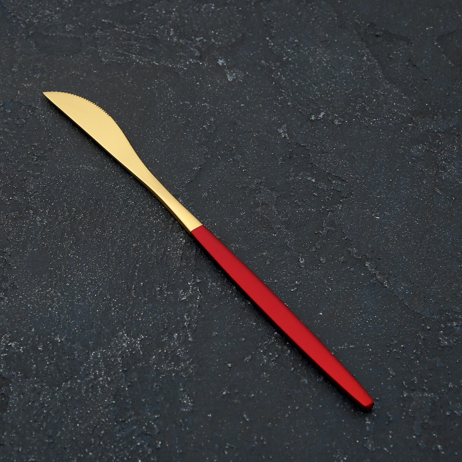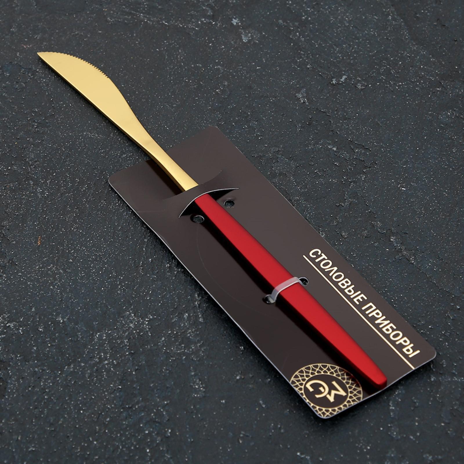 Нож столовый Magistro «Блинк», 22 см, цвет золотой, красная ручка, на подвесе