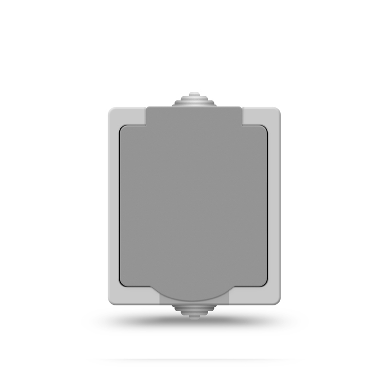 Розетка одноместная с крышкой UNIVersal серия Аллегро, IP-54, с/з, з/ш, о/у, 16А, 220В, серая (еврослот)