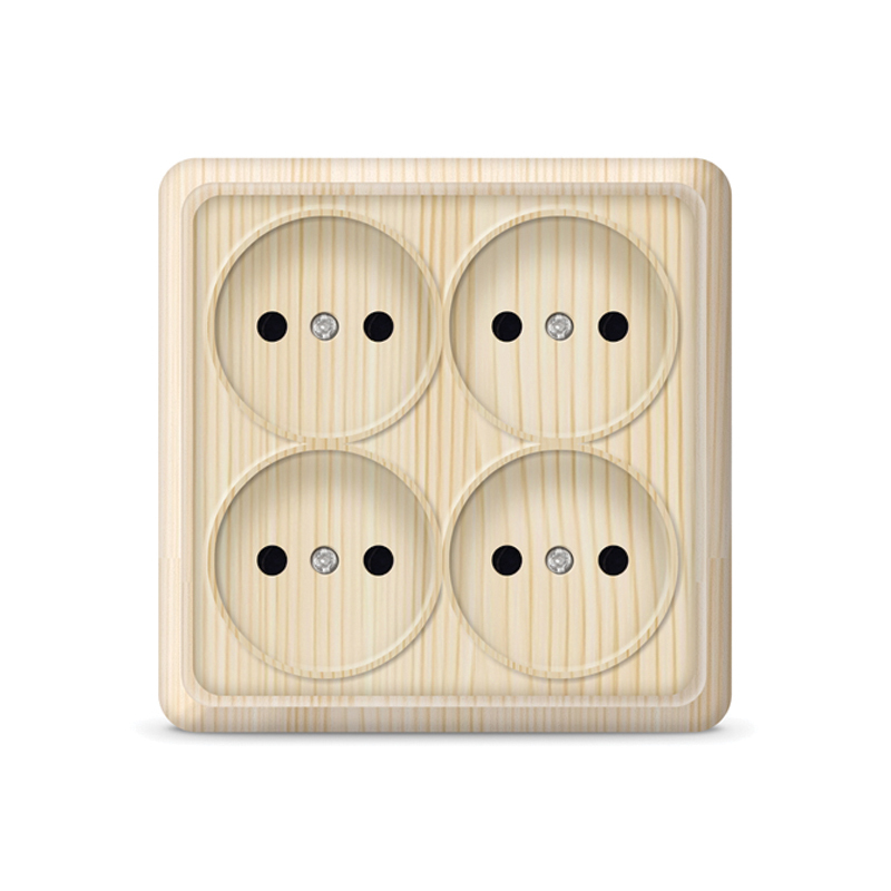 Розетка четырехместная квадратная UNIVersal серия Олимп б/з, о/у, 16А, 220В, сосна (еврослот)