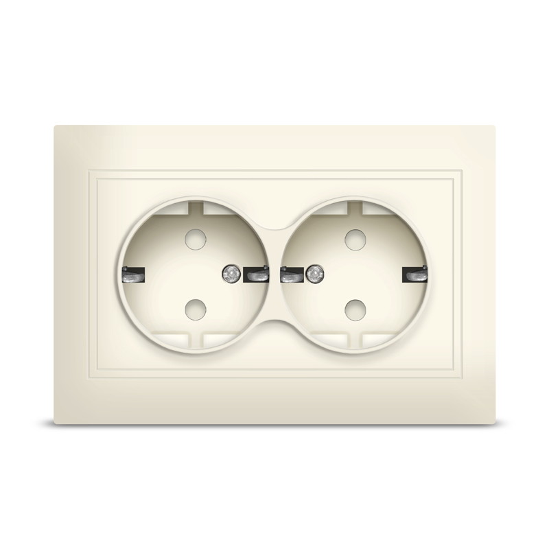 Розетка двухместная UNIVersal серия Севиль с/з, с/у, з/ш 16А, 220В, слоновая кость (ivory) (еврослот)