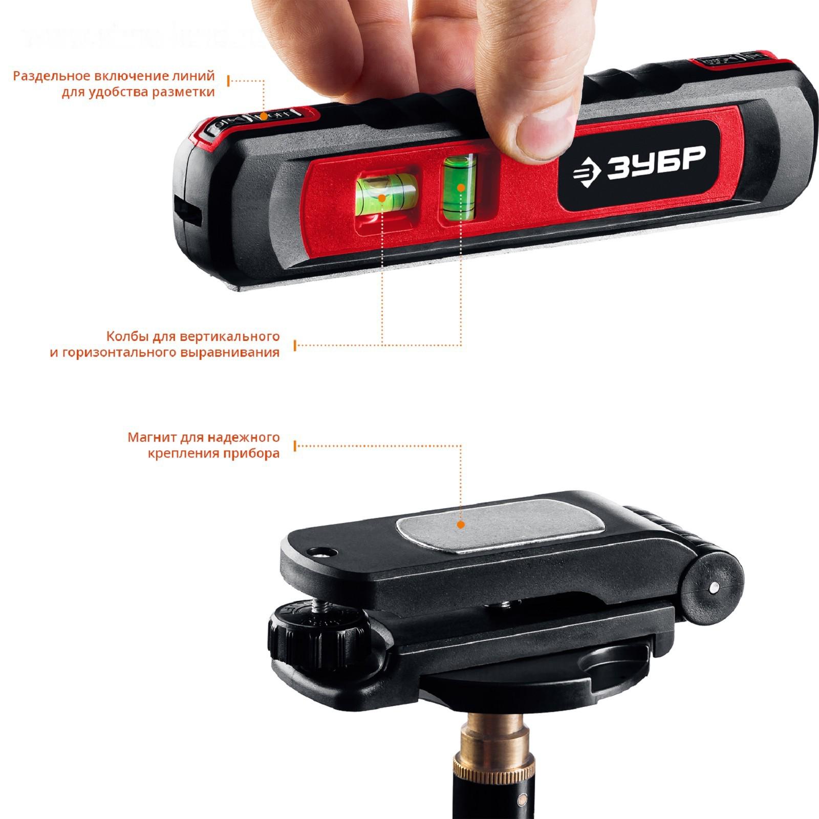 Уровень лазерный ЗУБР ТЛ-8, точка 20м + линия 5м, точн. +/-0,4 мм/м, подставка-штатив