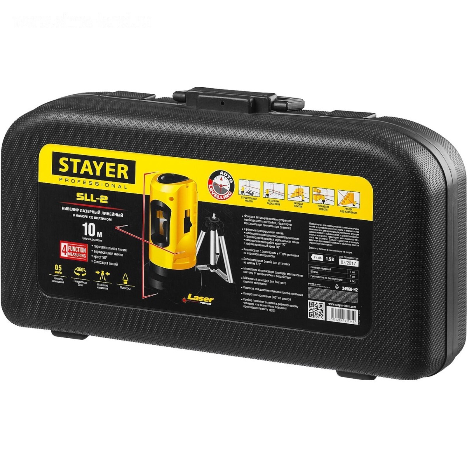Нивелир лазерный STAYER 34960-H2, SLL-2, линейный, 10 м, ±0.5 мм/м, ± 4°, 5/8"