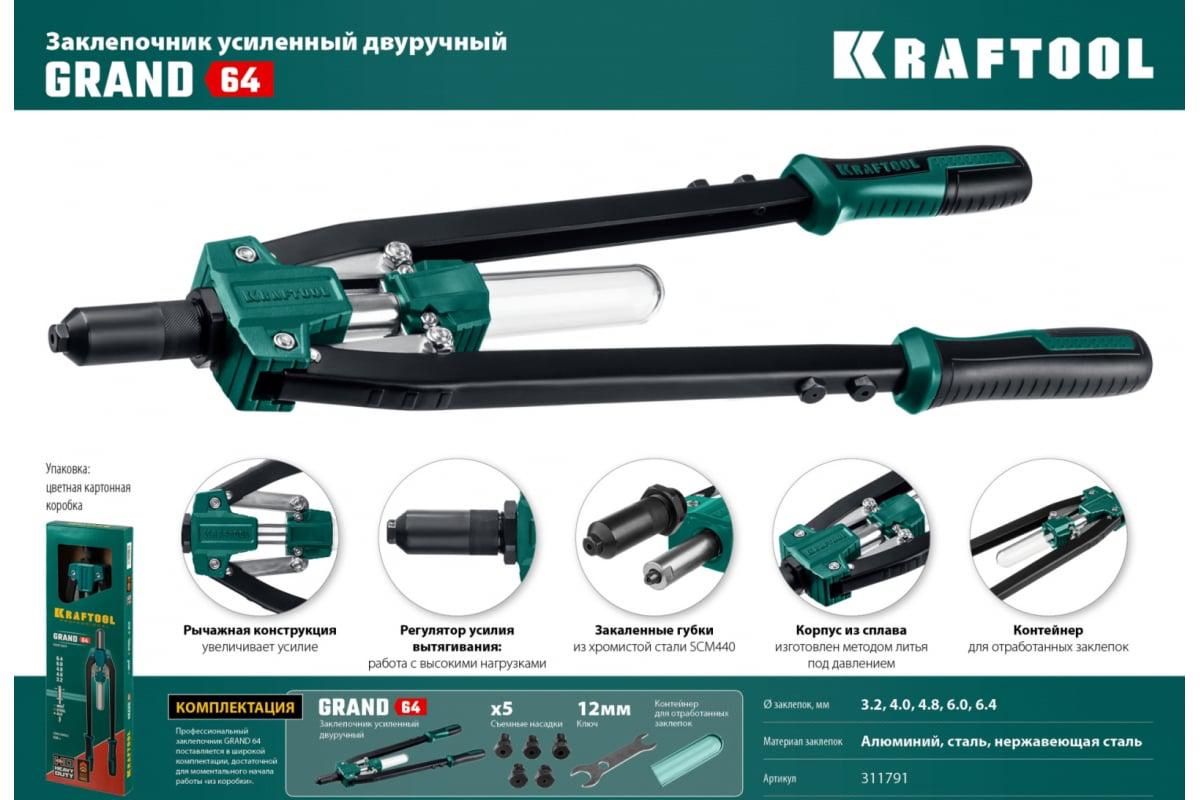Заклепочник KRAFTOOL 311791 GRAND-64 усиленный двуручный