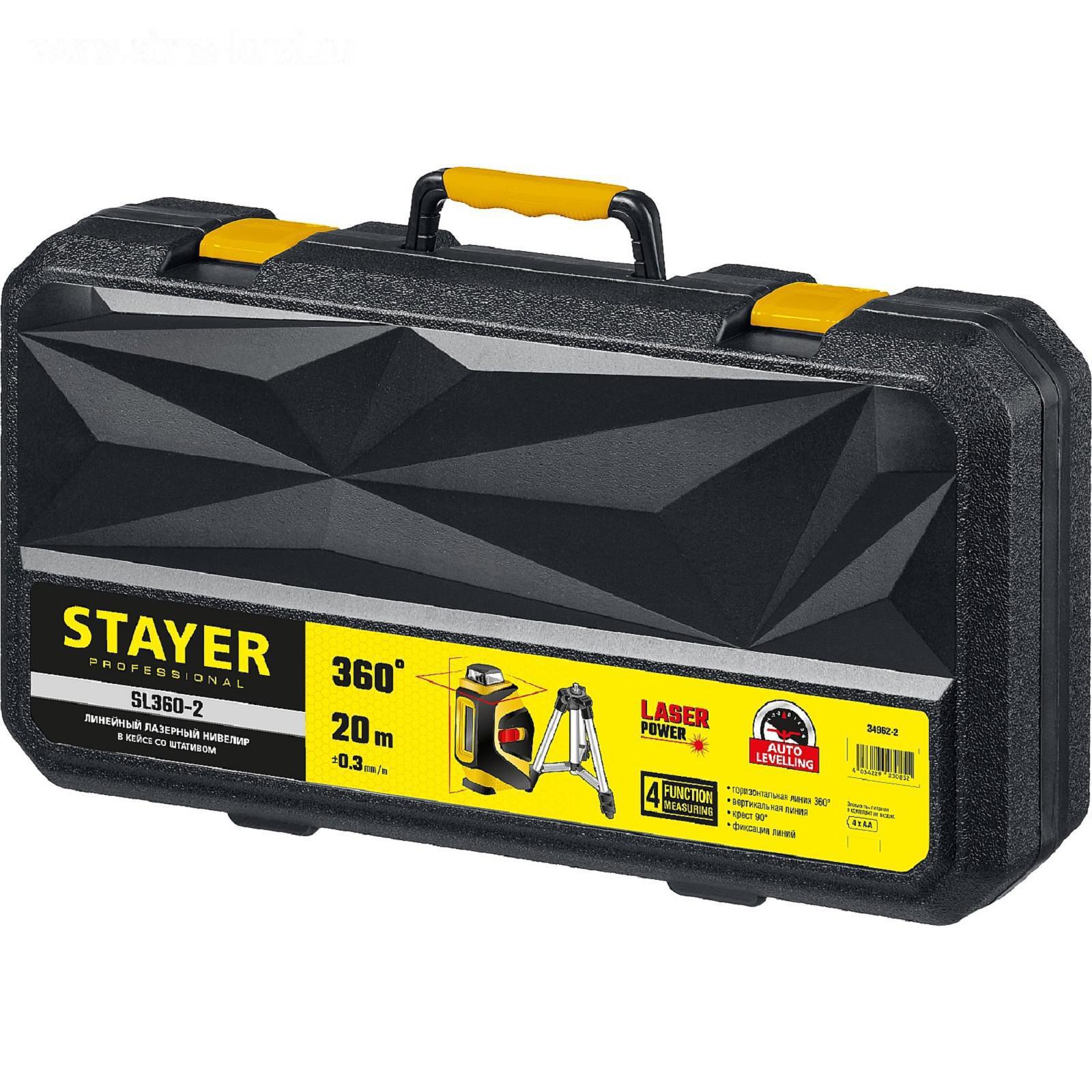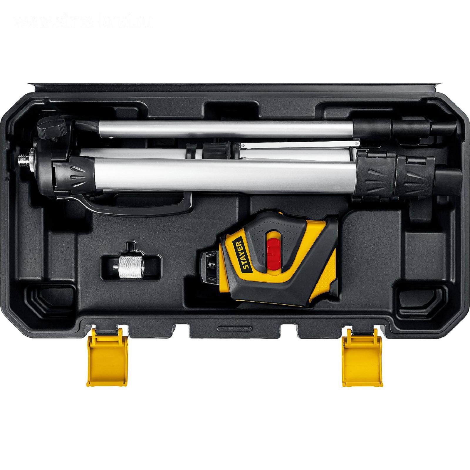 Нивелир лазерный STAYER 34962-2, 20м, крест + 360°, точн. ±0,3 мм/м, штатив, кейс