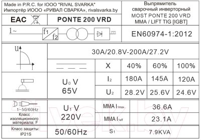Инвертор сварочный Most PONTE 200 VRD / 51MW300002