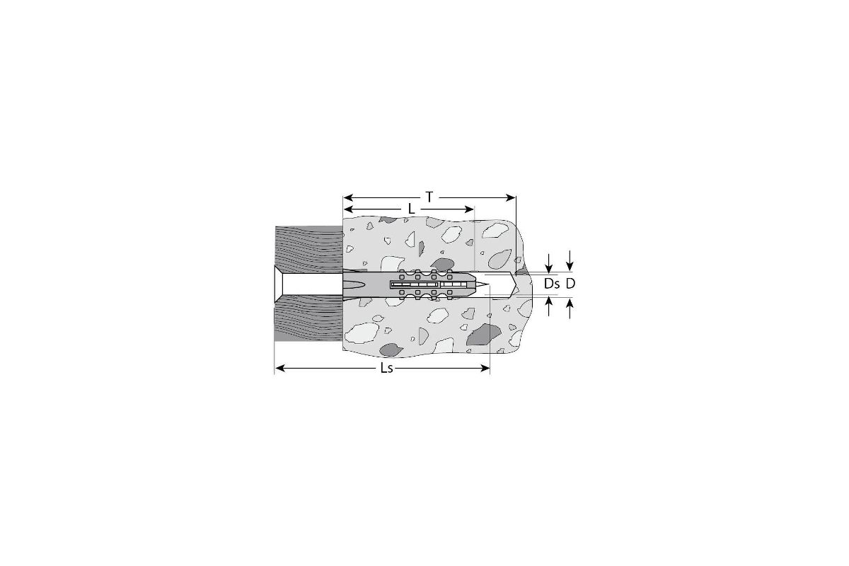 - Применяется для крепления полнотелых строительных материалах (бетон, кирпич, природный камень).